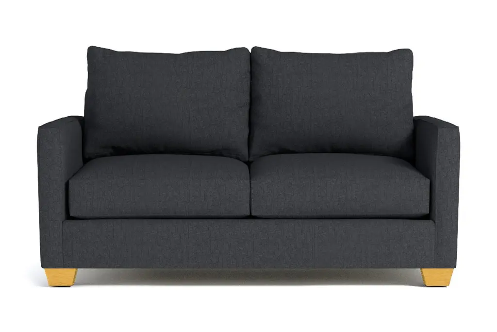 Who says apartment living has to cramp your style? Certainly not us. Apt2B specializes in apartment furniture with a modern flair and the Tuxedo Sofa is no exception. Designed for a smaller living space, this two-seat sofa still features all the comfort synonymous with our Tuxedo Collection, with knife-edged plush cushions and a relaxed vibe. You have your choice of nearly 30 different color fabrics and you can easily dress it up with a few throw pillows. Our breathable upholstery is stain resistant and easy to clean, making this a great choice if you have kids or pets. Our Tuxedo Sofa is made in the United States and comes with a limited lifetime warranty. It's an investment you can't afford to pass up! All dressed up and nowhere to go. The Tuxedo Collection was made for staying in. A transitional look that can translate to any style room, dress it up with pillows or throws to achieve your own look!