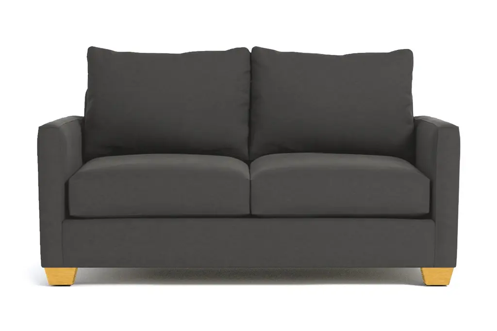 Who says apartment living has to cramp your style? Certainly not us. Apt2B specializes in apartment furniture with a modern flair and the Tuxedo Sofa is no exception. Designed for a smaller living space, this two-seat sofa still features all the comfort synonymous with our Tuxedo Collection, with knife-edged plush cushions and a relaxed vibe. You have your choice of nearly 30 different color fabrics and you can easily dress it up with a few throw pillows. Our breathable upholstery is stain resistant and easy to clean, making this a great choice if you have kids or pets. Our Tuxedo Sofa is made in the United States and comes with a limited lifetime warranty. It's an investment you can't afford to pass up! All dressed up and nowhere to go. The Tuxedo Collection was made for staying in. A transitional look that can translate to any style room, dress it up with pillows or throws to achieve your own look!