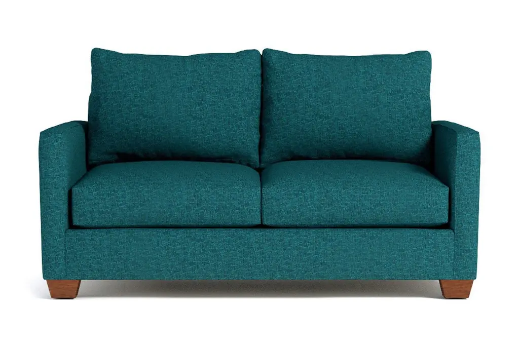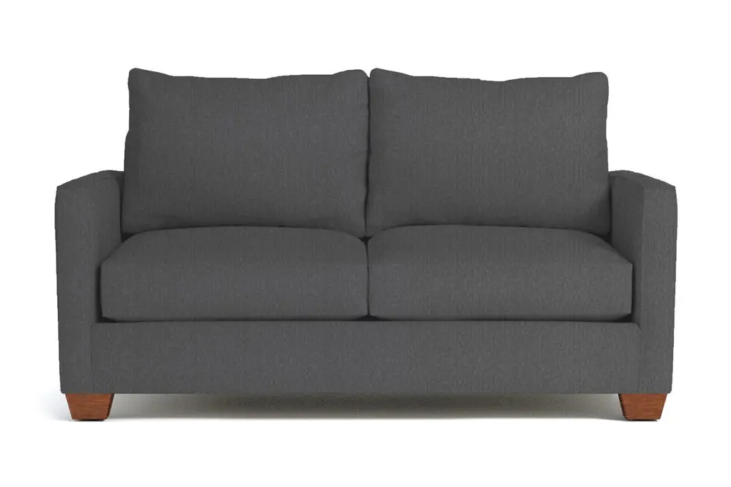 Who says apartment living has to cramp your style? Certainly not us. Apt2B specializes in apartment furniture with a modern flair and the Tuxedo Sofa is no exception. Designed for a smaller living space, this two-seat sofa still features all the comfort synonymous with our Tuxedo Collection, with knife-edged plush cushions and a relaxed vibe. You have your choice of nearly 30 different color fabrics and you can easily dress it up with a few throw pillows. Our breathable upholstery is stain resistant and easy to clean, making this a great choice if you have kids or pets. Our Tuxedo Sofa is made in the United States and comes with a limited lifetime warranty. It's an investment you can't afford to pass up! All dressed up and nowhere to go. The Tuxedo Collection was made for staying in. A transitional look that can translate to any style room, dress it up with pillows or throws to achieve your own look!