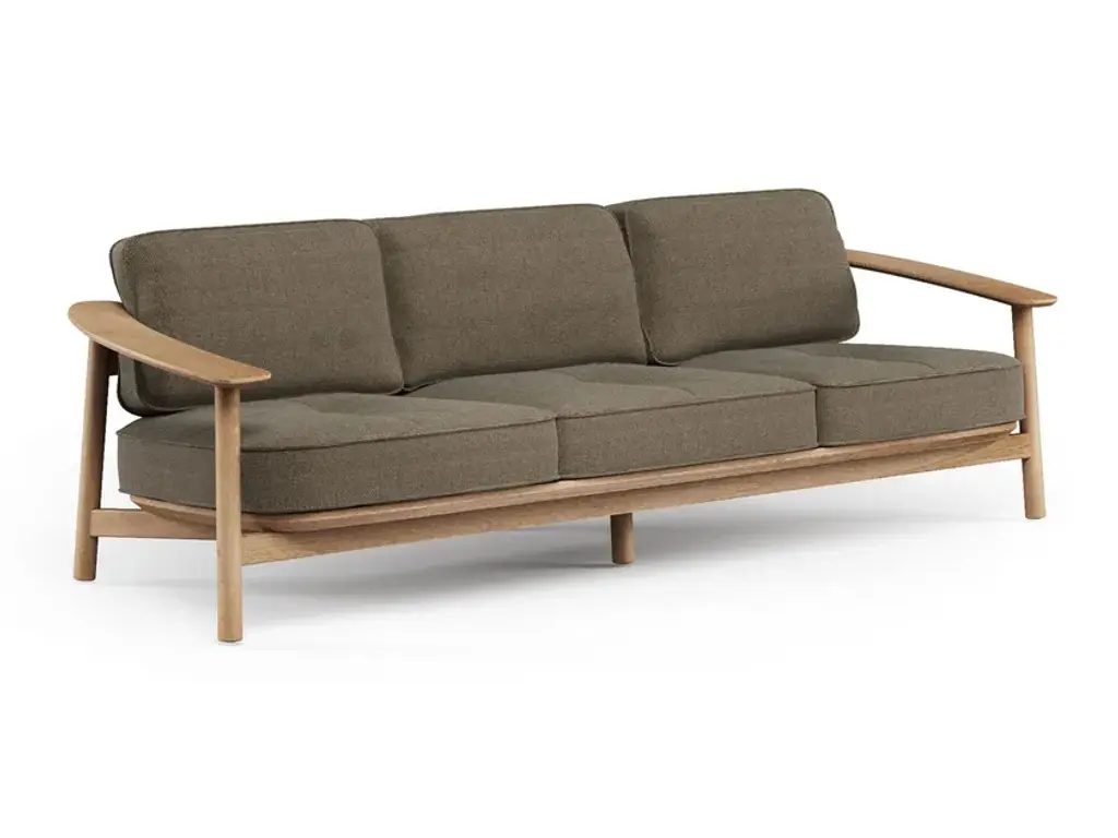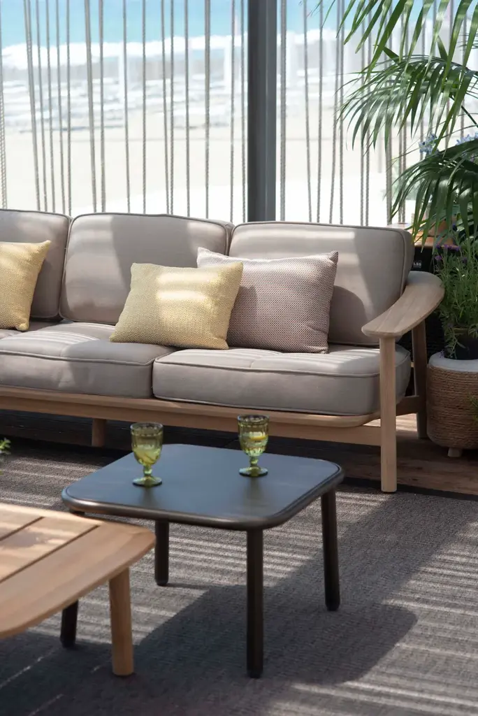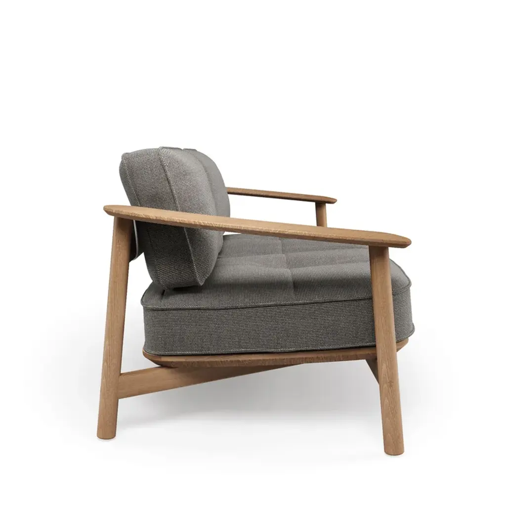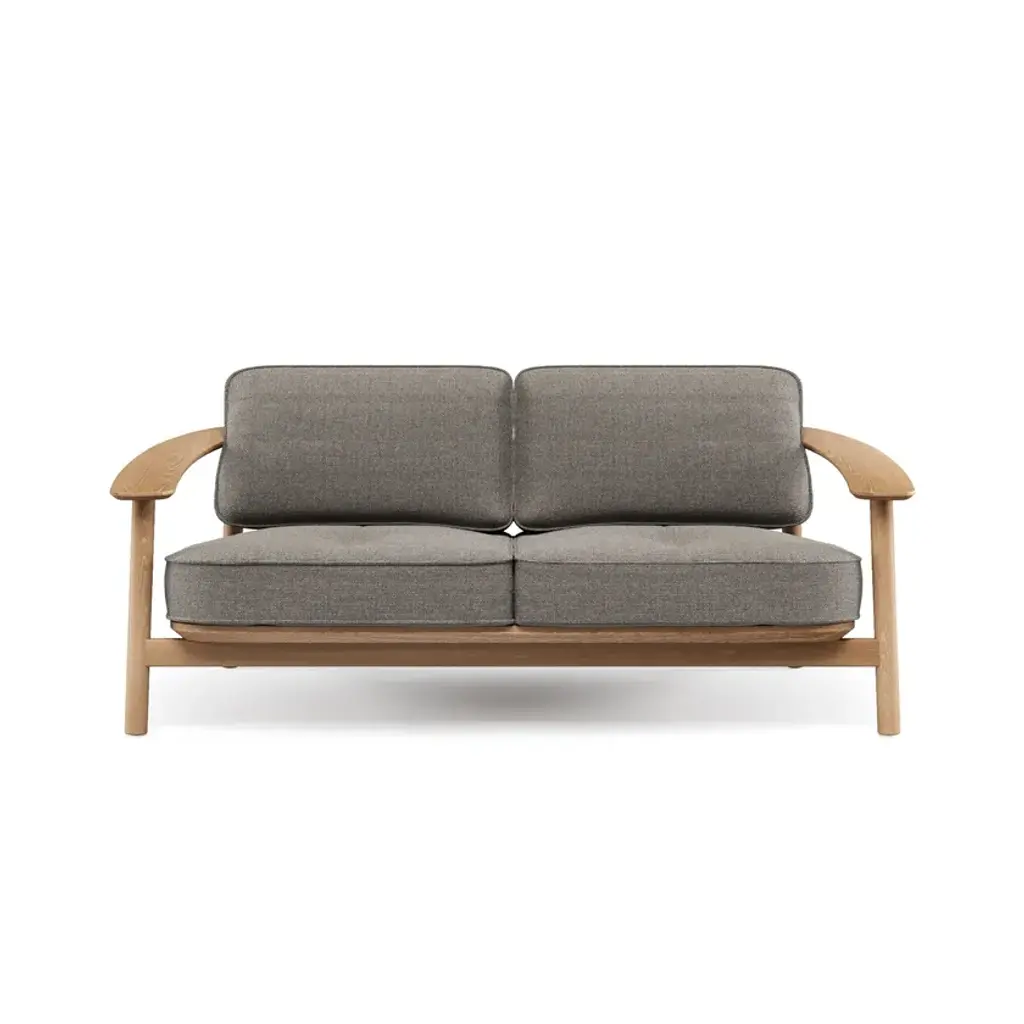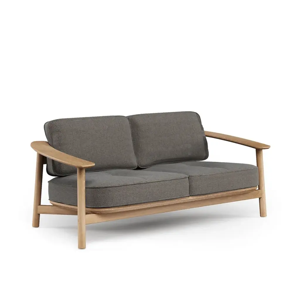 Twins is a 2 seater fabric garden sofa with 100 % FSC teak frame. Available in aluminium plus teak version.Twins is a collection with a strong identity and the result of the perfect blend between the Emu know-how and the designer Sebastian Herkner’s skills. It embodies two twin versions: one is totally in 100% FSC teak, while the other one is an interesting material-mix between pure wood and one of the main components of EMU products: the aluminum.Twins Benefits - FSC 100% Teak, known for its resistance to outdoor use - Products without protective oils, natural finish - Cushions with fixing to the structure to guarantee the correct position of the set - The cushions have a completely removable cover and are made with a water-repellent lining - All structures have adjustable feet - Possibility for different mixing and matching between the 2 versions or with other EMU collections - Even the teak version is suitable for marine environments - The armrest in teak is perfect for hot areas and more comfortable than metal armrests