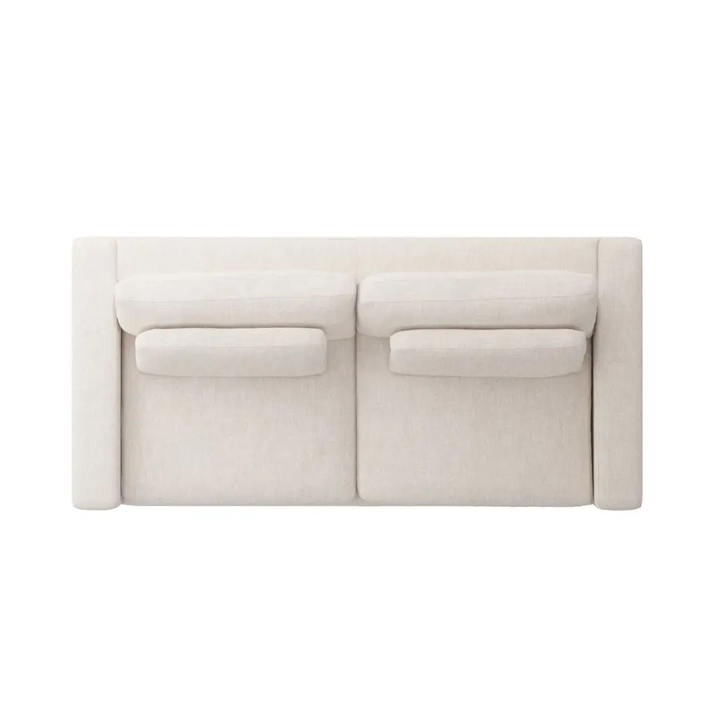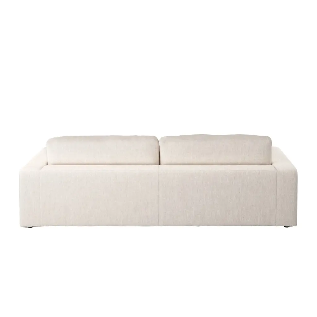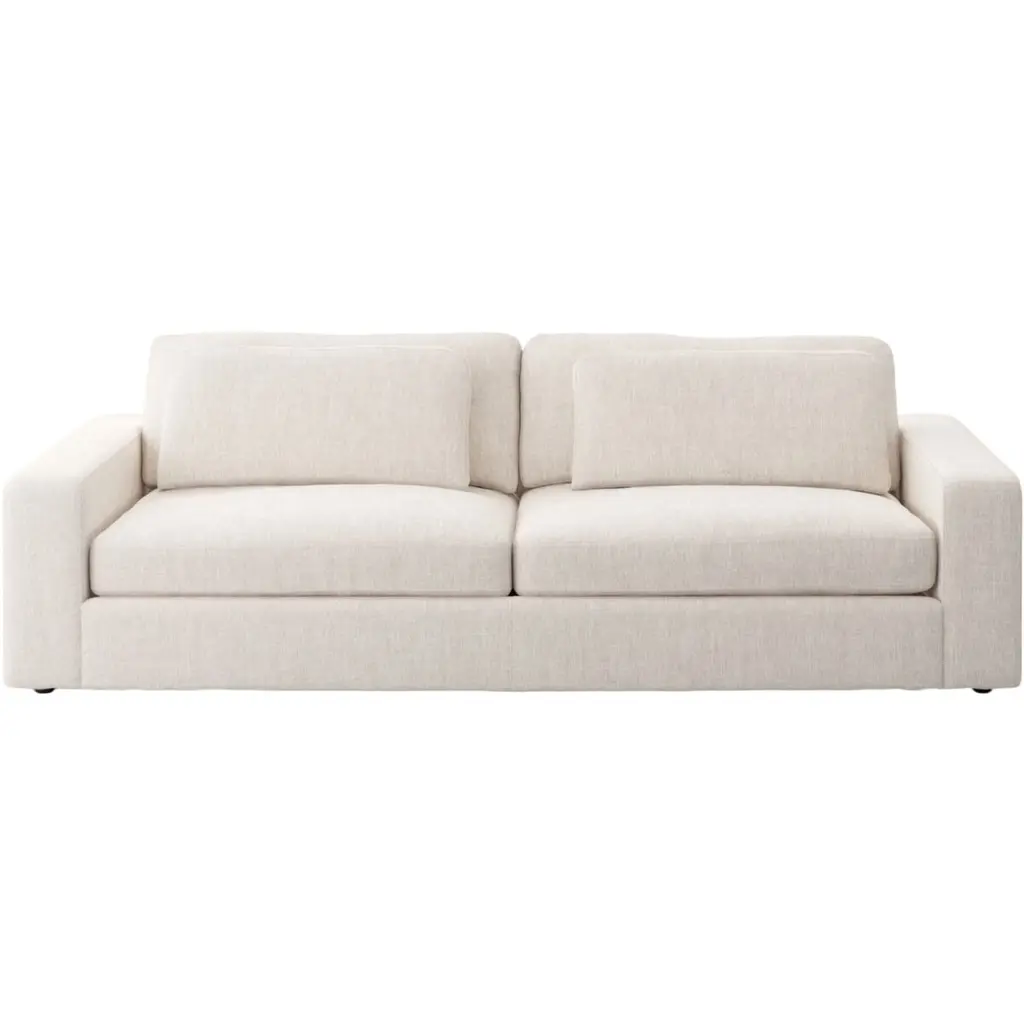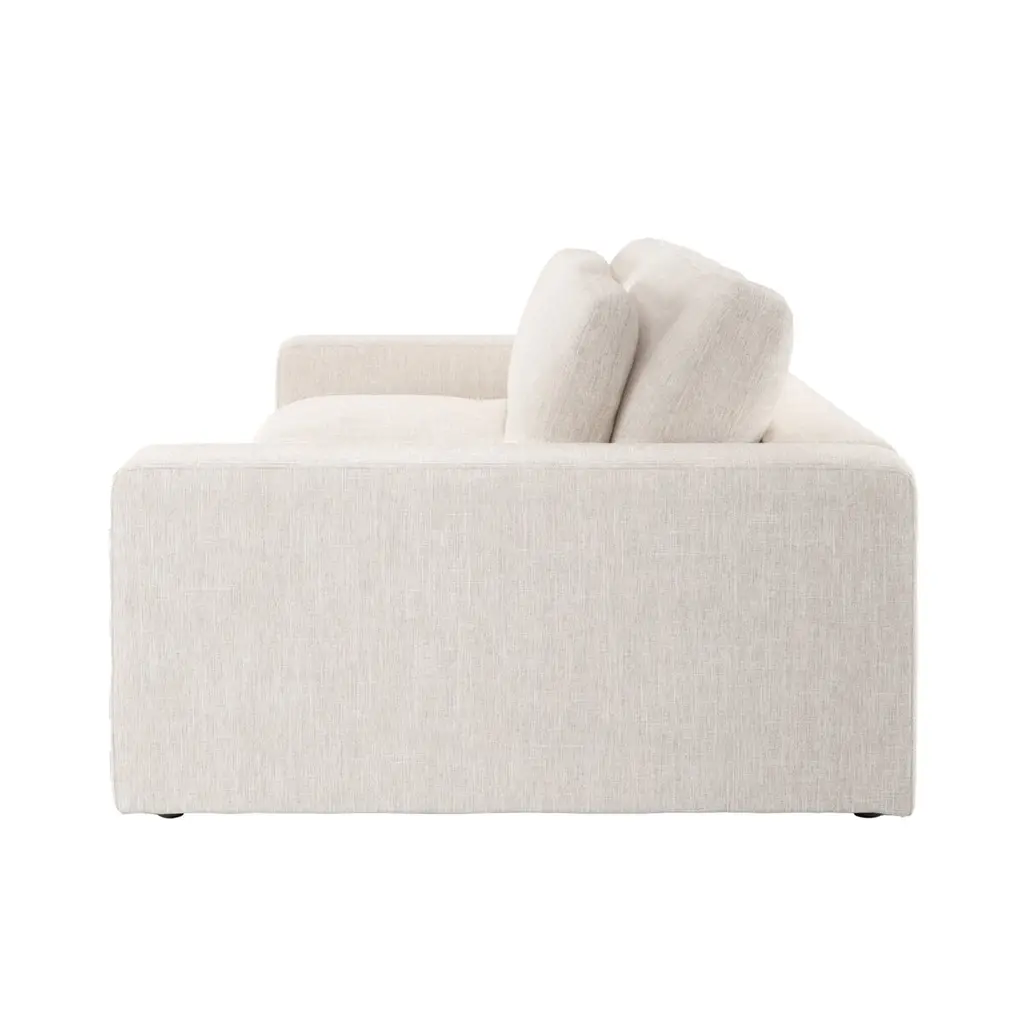 Deep, modern and seductive. This dramatic, spacious sofa is covered in a durable light neutral woven fabric that mixes well with any color palette.