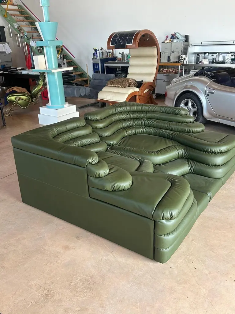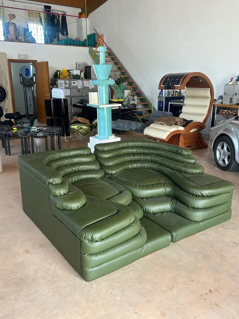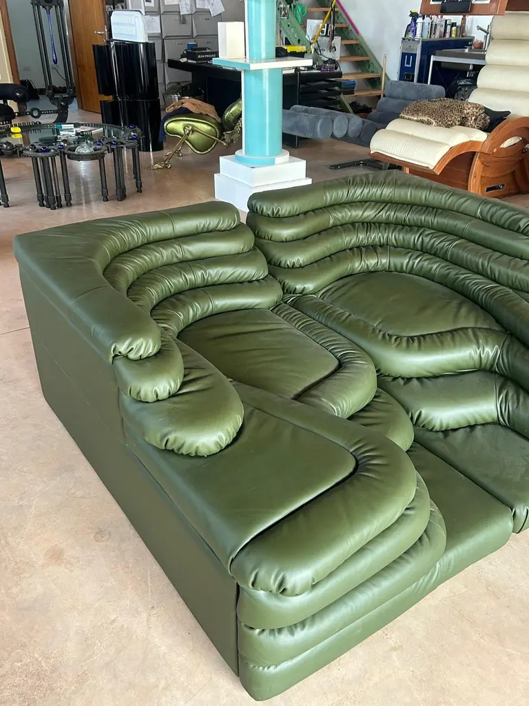 Ubald Klug For De Sede Pair Of 'Terrazza' Sofa In Green Leather