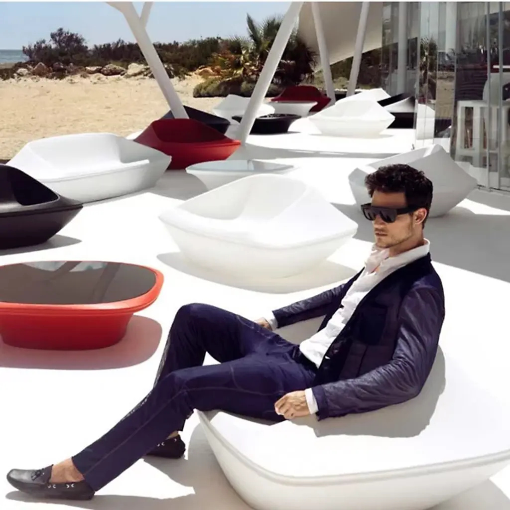 The Ufo Outdoor Sofa by Vondom is a creative design from Ora Ïto that draws inspiration from the shapes of iconic pagodas and UFOs. Made from polyethylene resin using rotational molding, the fluid and sculptural nature of this sofa can complement spaces both indoors and out. Playing with the opposition of negative and positive shapes and dressed up with a uniform finish, this cool, comfortable piece of furniture makes a fun addition to unique lounge areas.