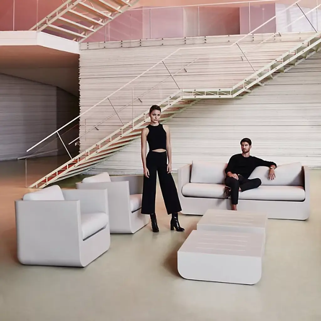 The Ulm Outdoor Sofa by Vondom is a functional design from Ramon Esteve. A tribute to the formal approach of the Ulm School, this sofa balances design, technology, and ergonomics while basing its structure off of cube, prism, and spherical shapes. The soft silhouette of this lounge spot supports a comfortable cushion and is made from polyethylene resin using a rotational molding process. Ideal for spaces both indoors and out, this piece is the perfect addition for areas needing some extra seating.