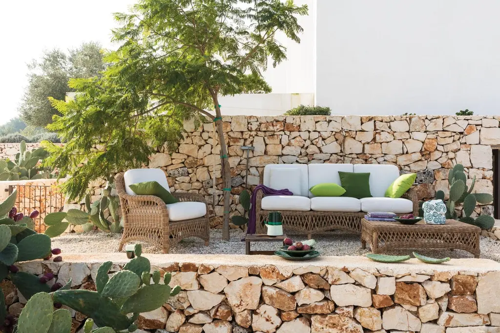 The collection is a reinterpretation of traditional Mediterranean lines. The soft, sinuous shapes can be found in all the elements in the series, the characteristic feature of which is the weaving in hand-woven WaProLace® synthetic fibre. The elegant pattern covers the aluminium frame, enhancing its voluptuous, enveloping shapes.The craftsmanship and natural colouring of the weave give it a classic, discreet elegance, allowing it to interpret any outdoor style. Available also on 3 seats