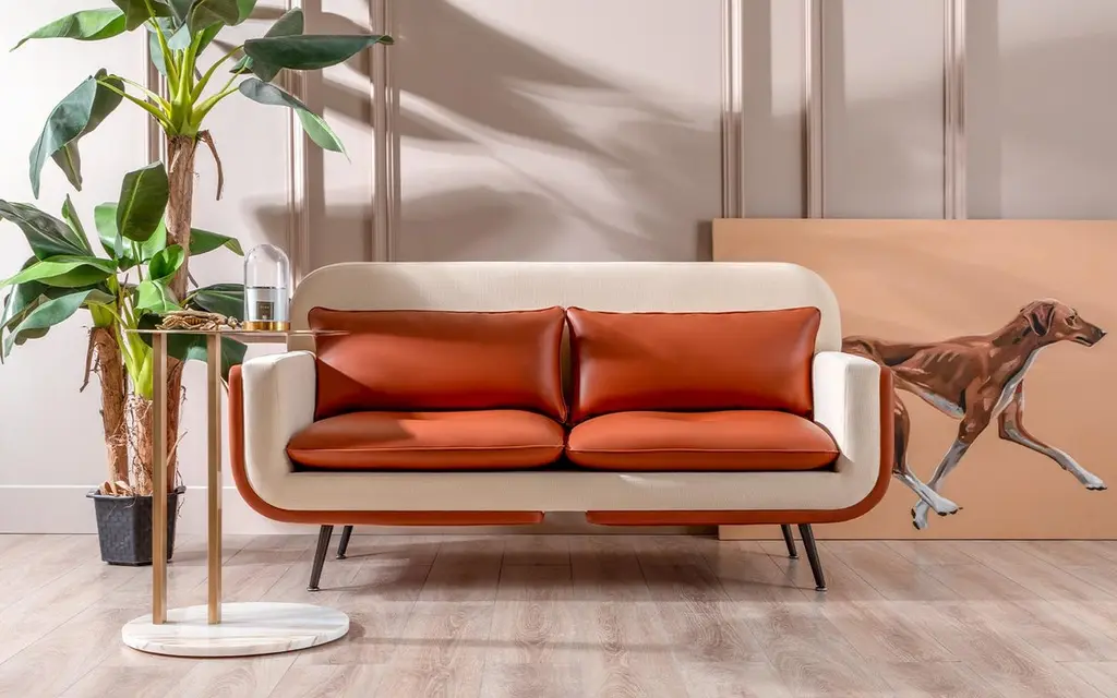 Designed to maximize both form and comfort, the Up two seater sofa will add a unique style to your space.You can combine different fabrics for back and front of sofa or choose just one fabric. -Spring upholstery -32 DNS HR Foam-1st Grade Alder frame- Faux leather armrest details.Upholstered product use and care Dry clean your product and refer to the sales form for special care instructions.When choosing your fabric, submit your flammability certificate request.Avoid using upholstery perfumes directly on the product. Instead, spray in the air around the product to ensure dispersion rather than direct contact.