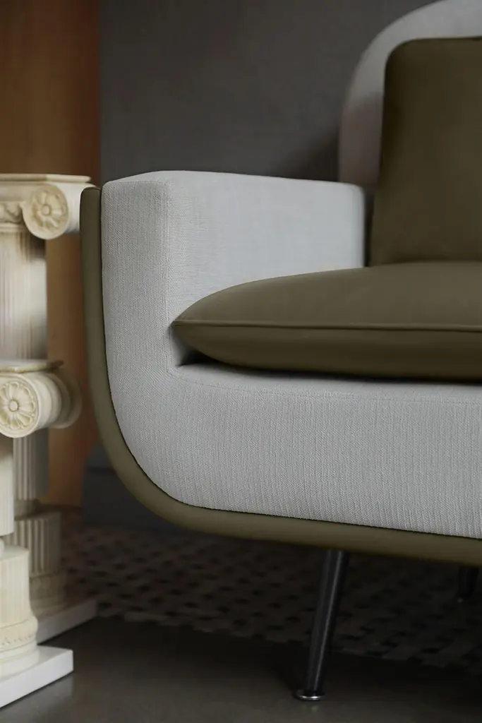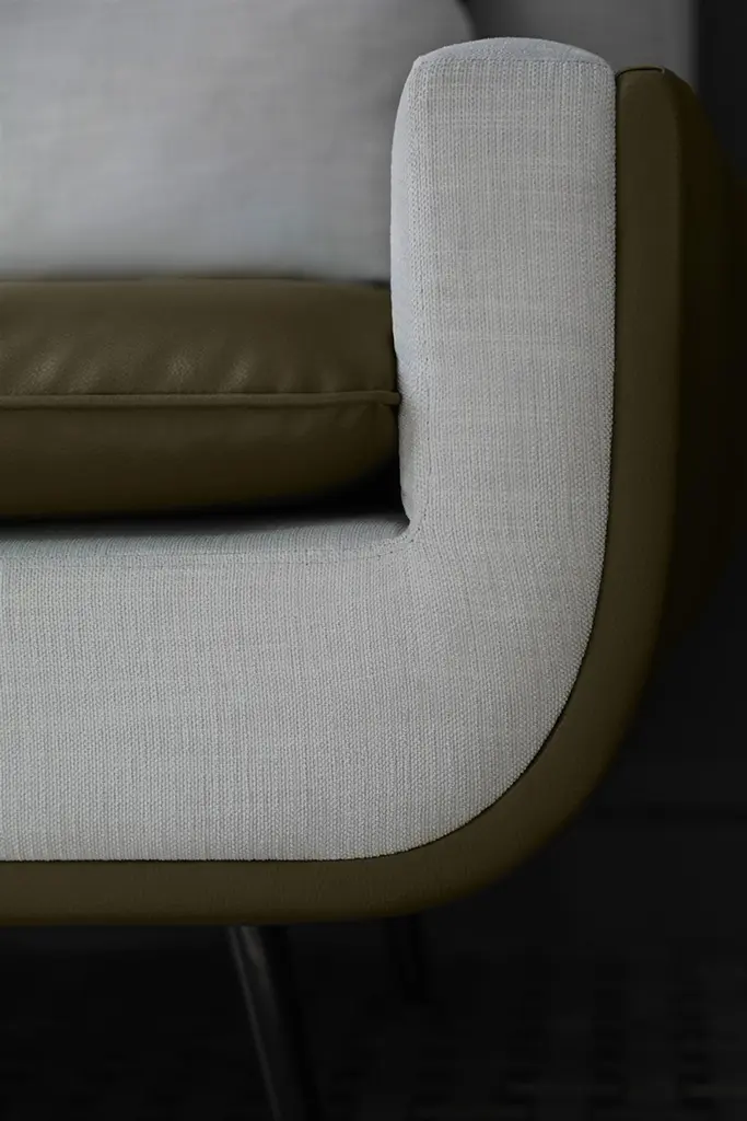 Designed to maximize both form and comfort, the Up two seater sofa will add a unique style to your space.You can combine different fabrics for back and front of sofa or choose just one fabric. -Spring upholstery -32 DNS HR Foam-1st Grade Alder frame- Faux leather armrest details.UPHOLSTERED PRODUCT USE AND CARE Dry clean your product and refer to the sales form for special care instructions. Call us for re-upholstery of your product.When choosing your fabric, submit your flammability certificate request.Avoid using upholstery perfumes directly on the product. Instead, spray in the air around the product to ensure dispersion rather than direct contact.
