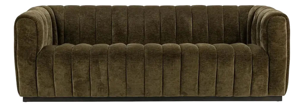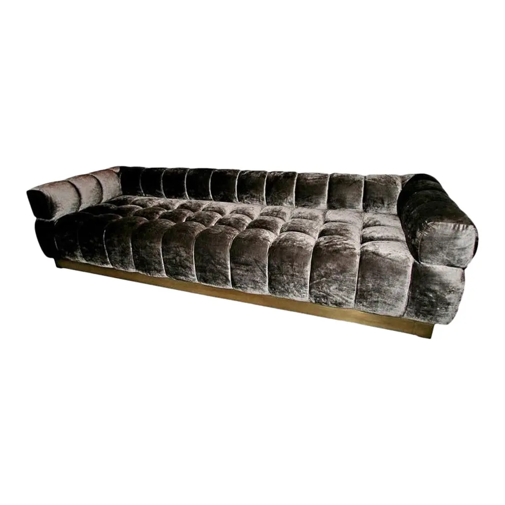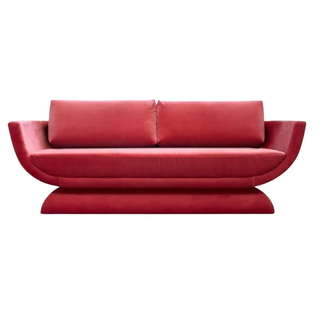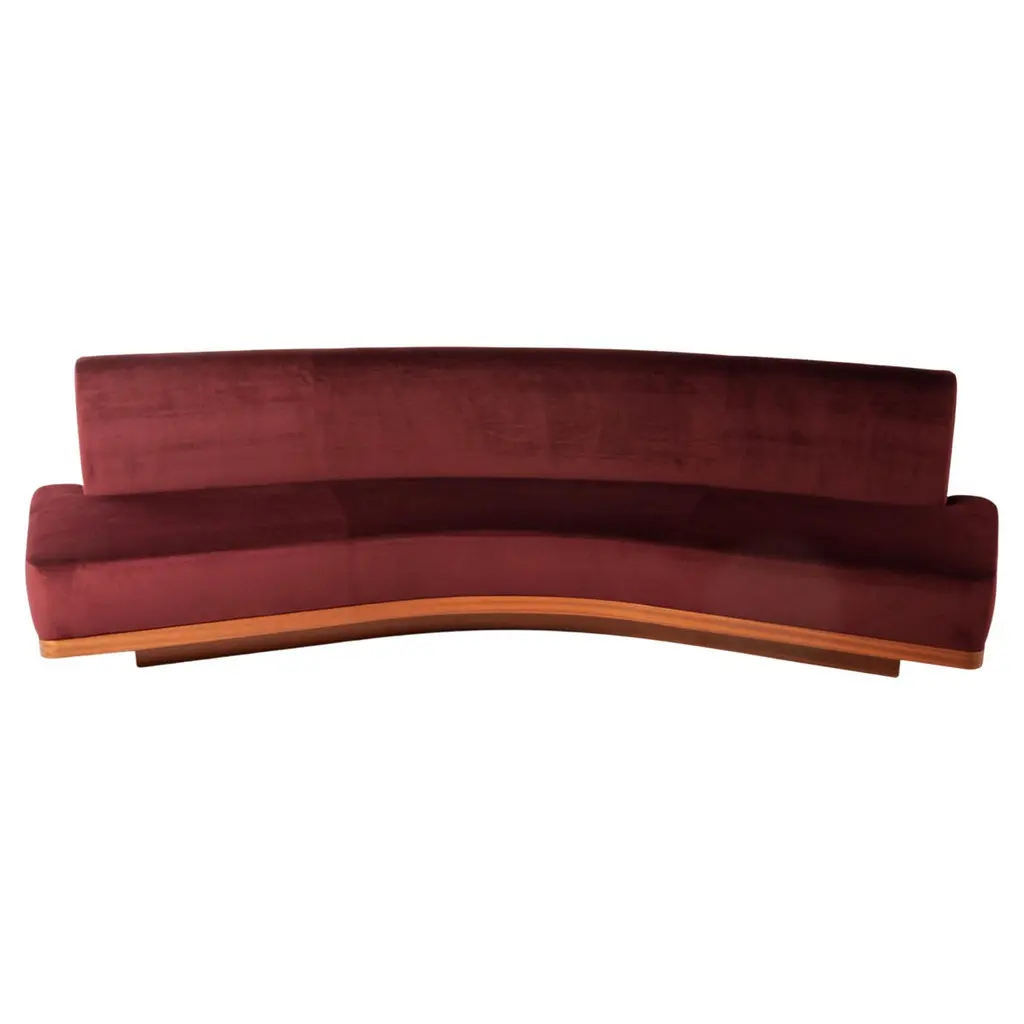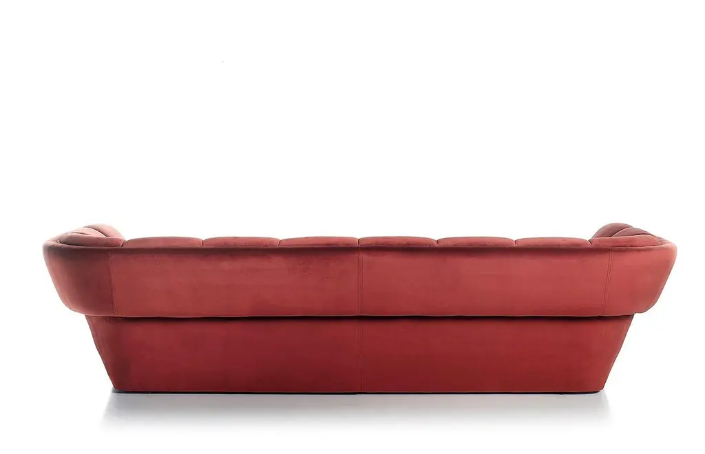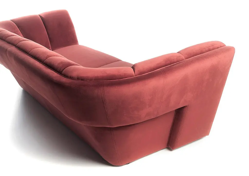 Upholstered Striped Style Sofa In Tai Marsala Smooth Velvet.