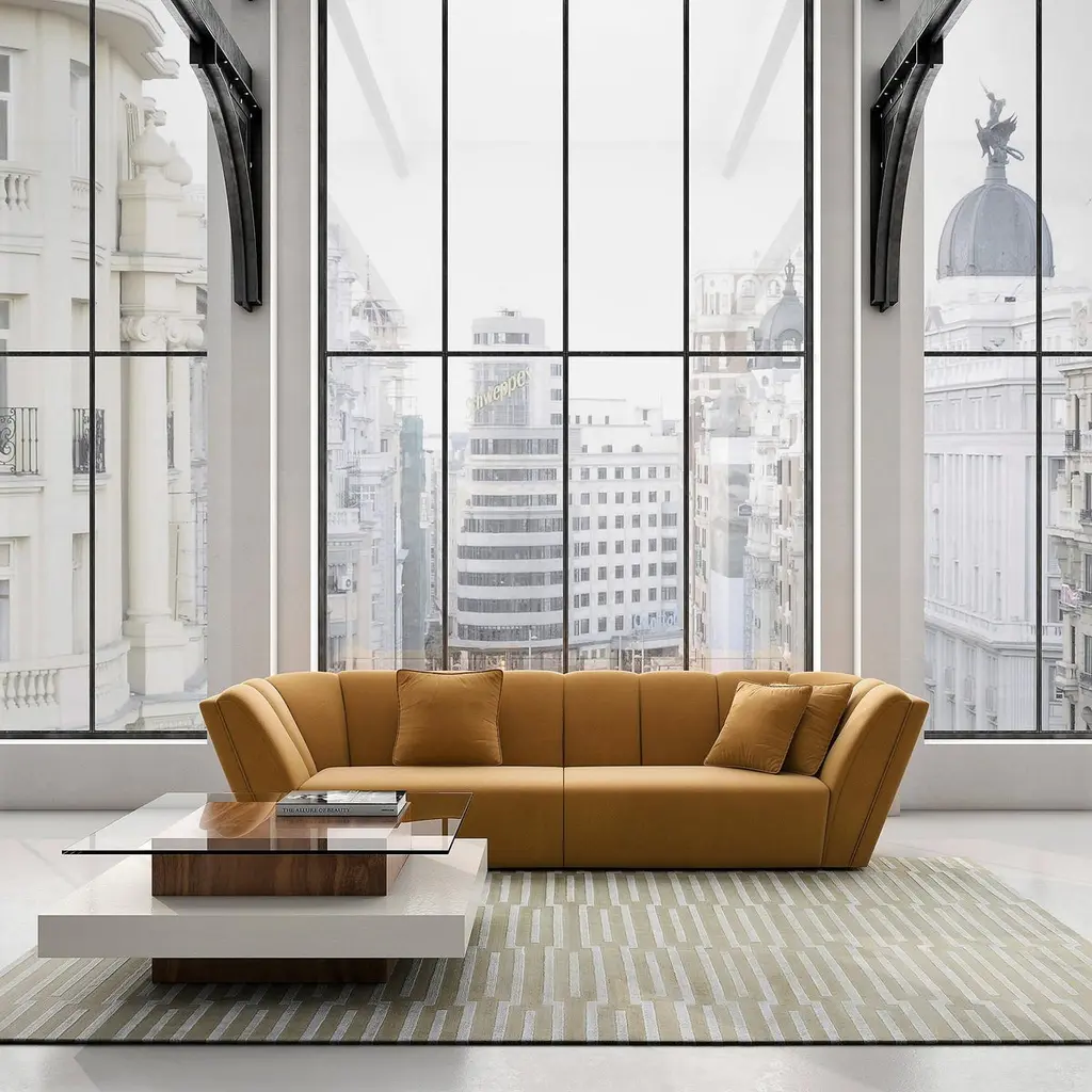 Exclusive and sophisticated design sofa, luxury and high decoration model bowie upholstered striped style in TAI MARSALA F2827 with elegant back.Bowie is exclusive handcrafted furniture piece with a very personal philosophy with unique concept from the perspective of the interior designer and not the traditional furniture manufacturer. For this reason this sofa is not only limited to the design of furniture but also includes high end textiles and materials with unique and inimitable style.Contact us to enquire about COM/COL production, requirements and material shipping instructions.Please contact us if you have any questions about customization and pricing. We will be glad to check with the factory’s technical team if sizes, finishes, and colors can be customized. We do our best to expedite production and to ship and deliver product within the listed lead time, however current lead times might be longer due to global shipping backlog and delays. These delays are out of our control and cannot be a reason to cancel an order.