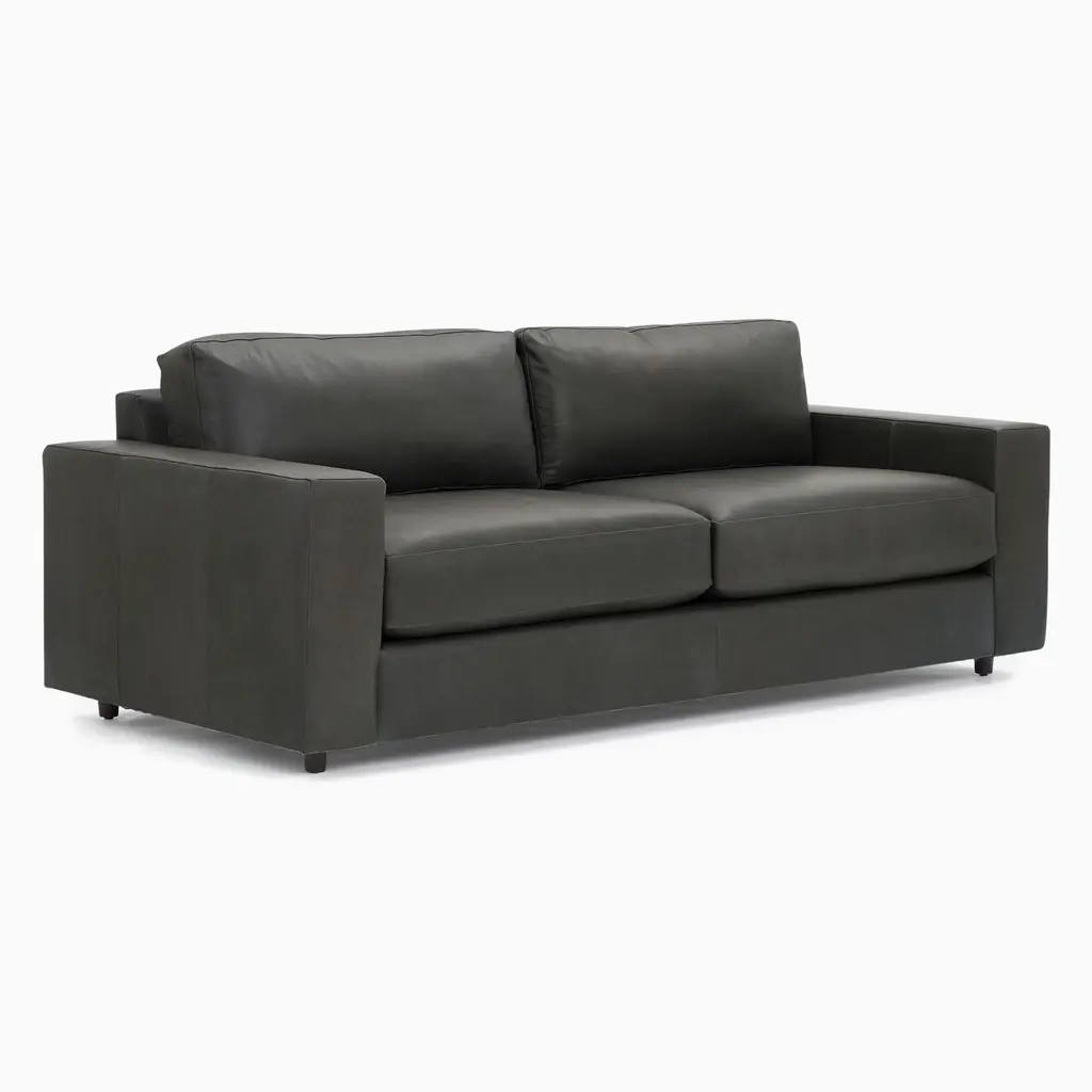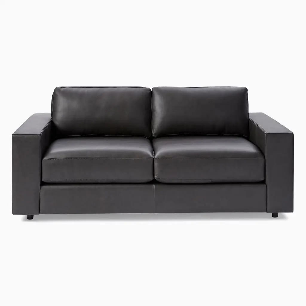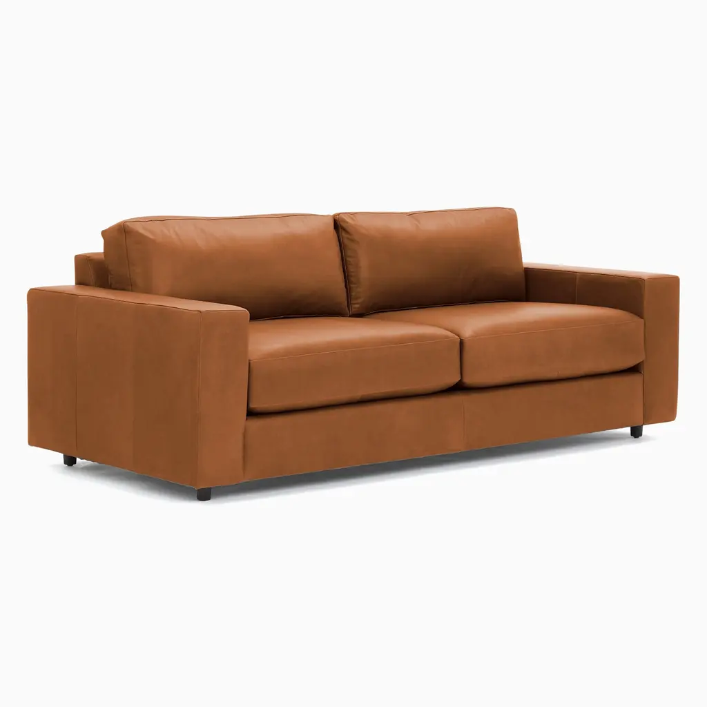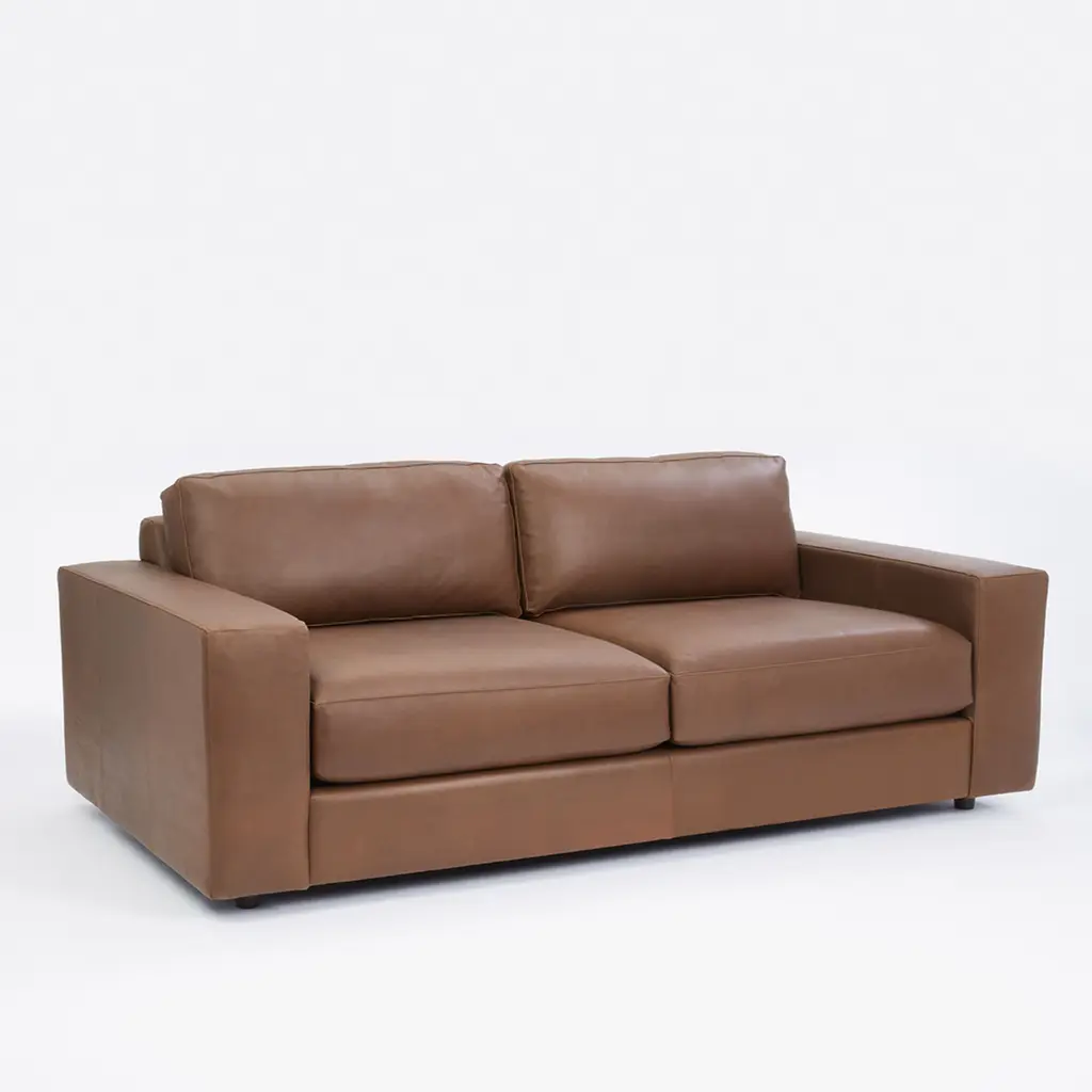 The simple silhouette makes it an instant classic. Deep seats for sink-right-in comfort. Covered in your choice of beautiful leather. Choose the size that's best for you.