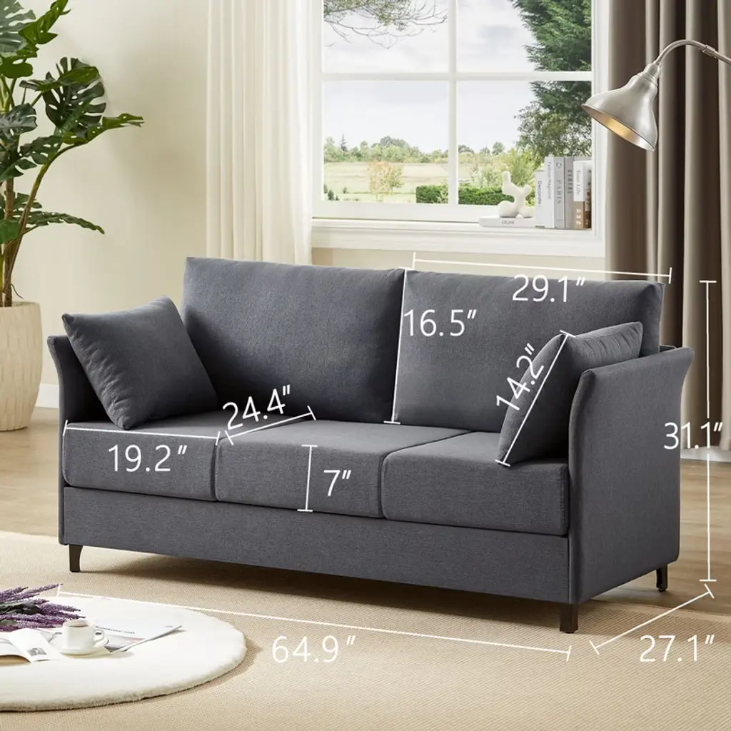 65 Inch Modern 3 Seater Sofa, Deep Seat Couch with Detachable Washable Covers, Soft Linen Fabric for Living Room, Apartment.