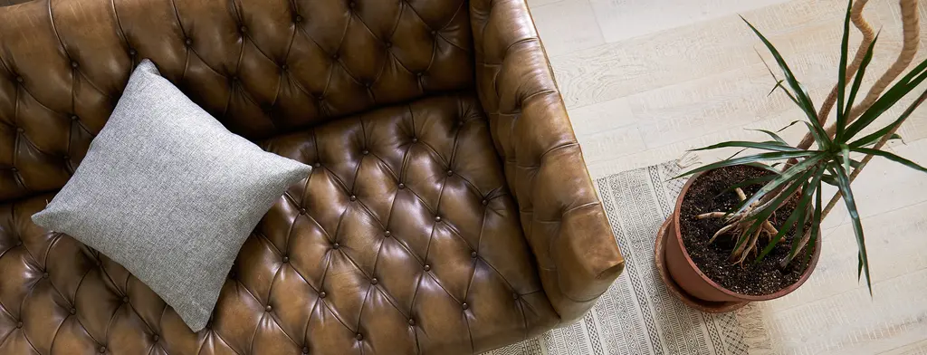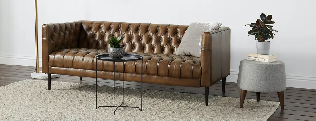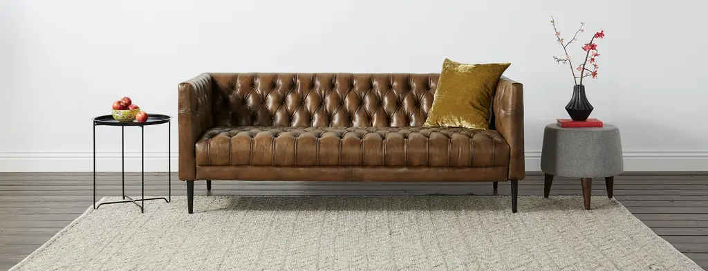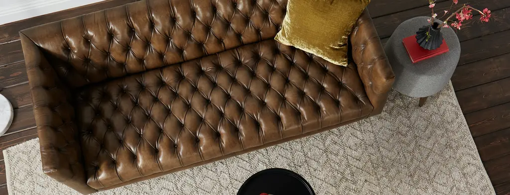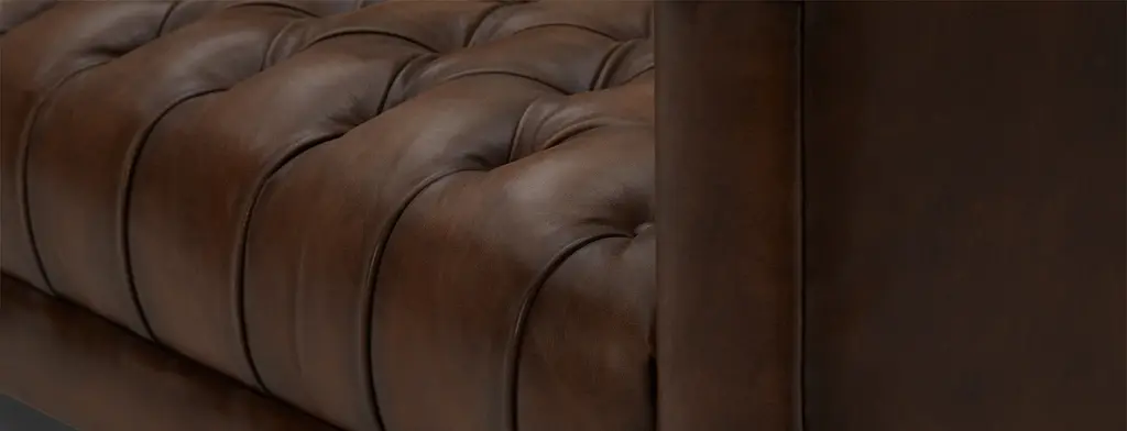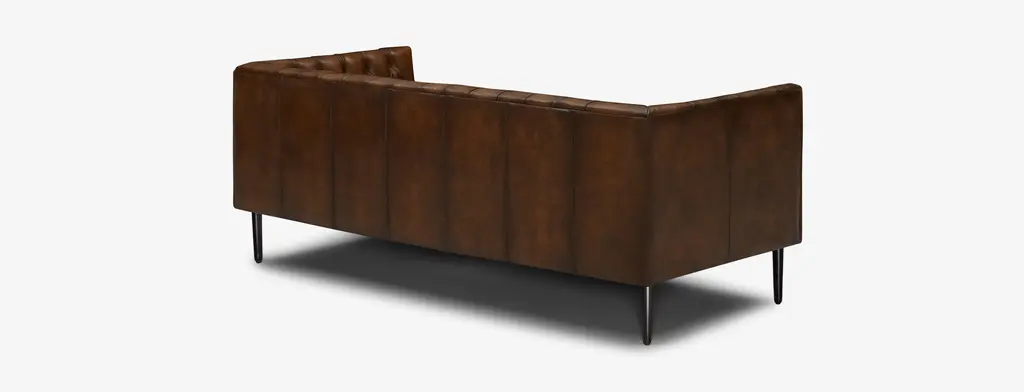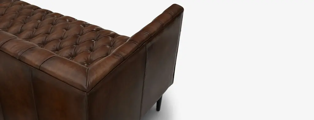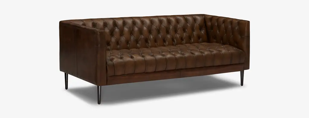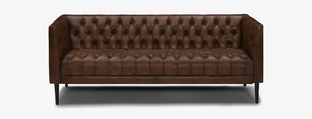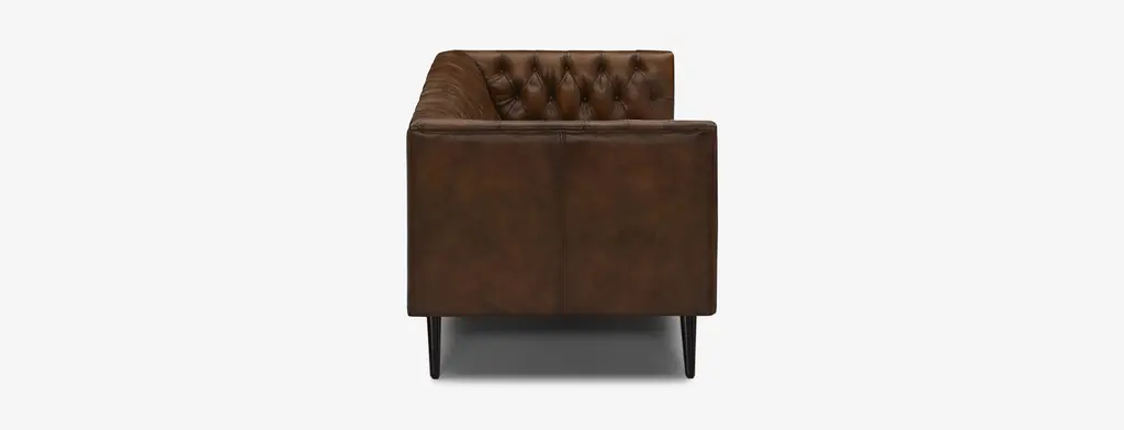 A modern spin on the classic Chesterfield with slimmed down arms and a sleek, fully button tufted profile that positively pops in luscious top-grain leather. Elevate your living situation with the sophisticated Vaughn Leather Sofa. At 76” wide, it clocks in slightly smaller than your standard sofa yet effortlessly makes a statement that’s a pleasure to view from every angle. A perfect combo of old school cool and the best in modern design, yours is an investment that’ll delight for years to come.