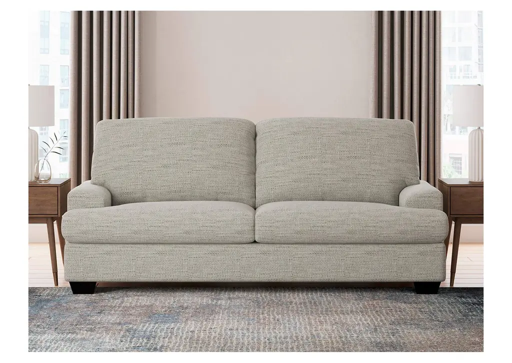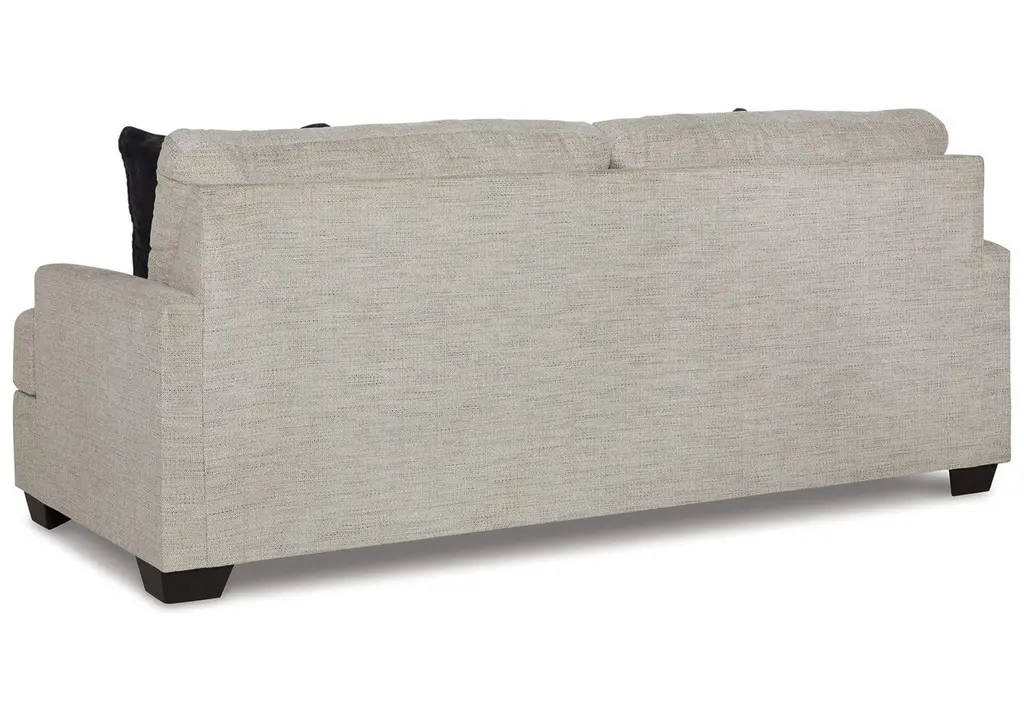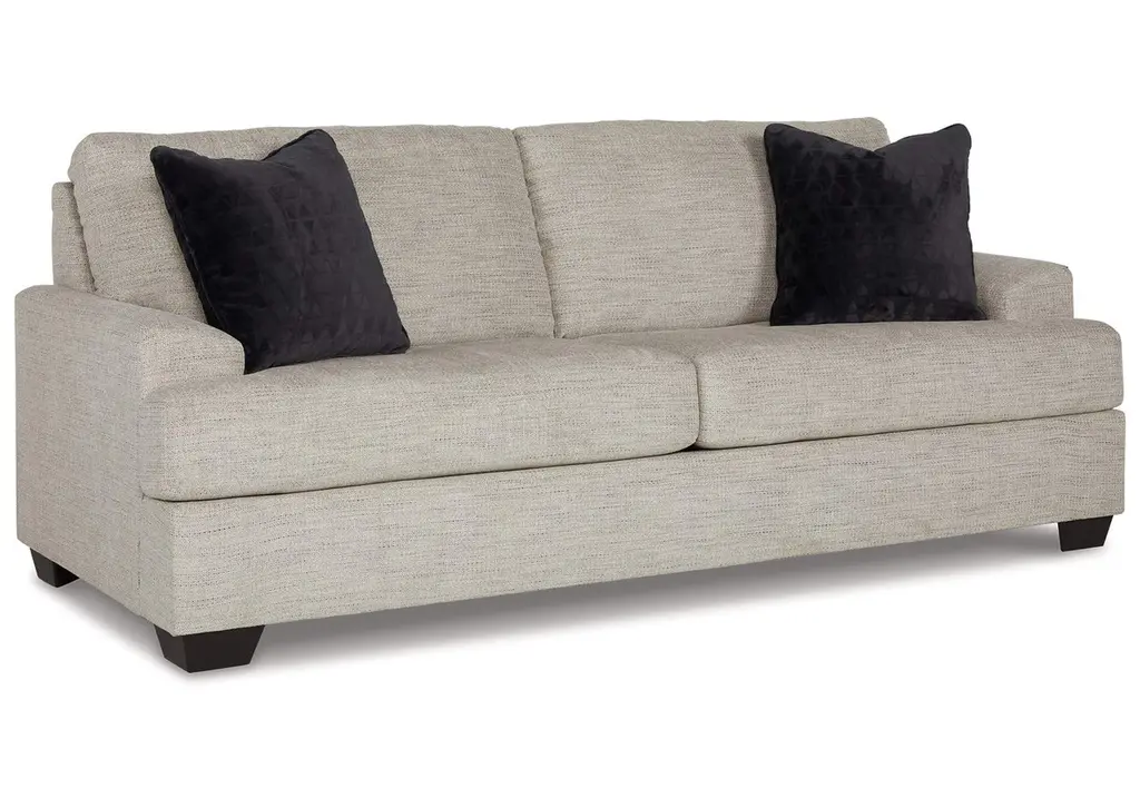 Laid-back luxury meets neutral practicality in the Vayda sofa. Taking its cues from contemporary design, this clean-lined piece is outfitted with angular arms for a layer of geometric expression. Softly upholstered, sizable cushions keep you comfortable, while black faux fur accent pillows bring a touch of soft glam. With this sofa, winning style and superb functionality go hand in hand. Weight 135.000 lbs. (60.75kgs.)
