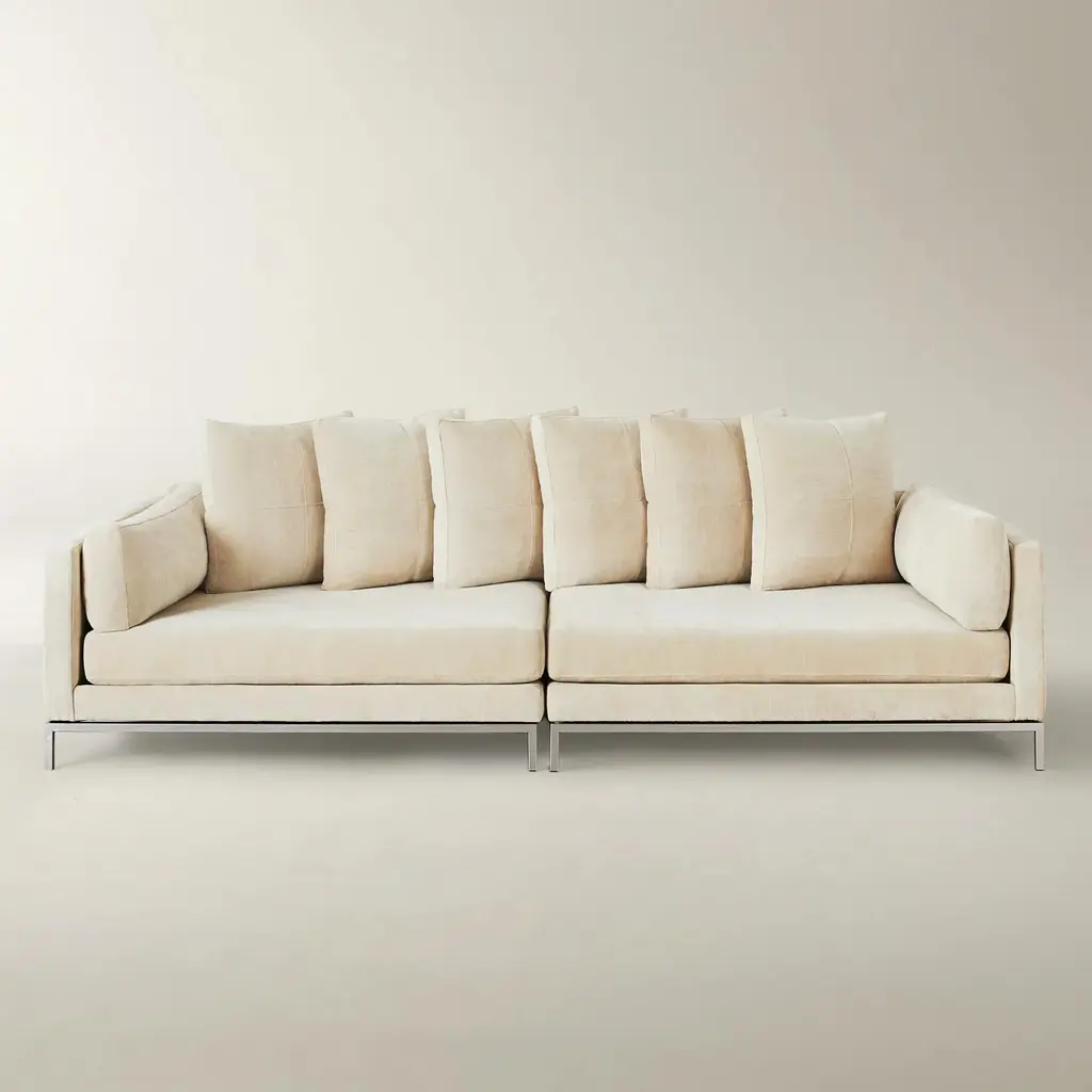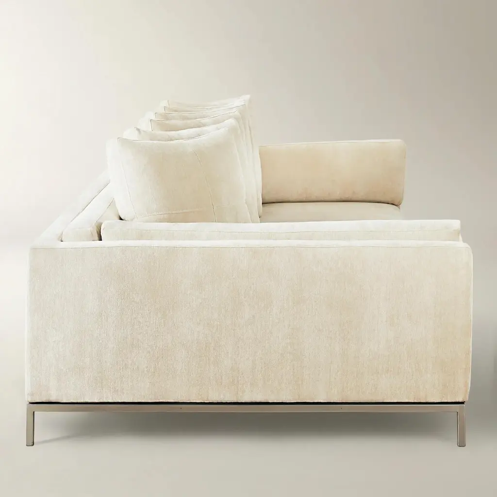 You can't go wrong with the Ventura Collection, because it works in just about any space. Stylish and irresistibly comfortable, the roomy designs in this collection are supported by reinforced kiln-dried hardwood frames with clean-lined silhouettes and low, extra-deep bench seats. Elevated bracket bases in brushed steel add an element of structure and shine, while rubberized feet keep each piece firmly in place. Shown in Opulent Chenille Snow.Z Gallerie exclusive