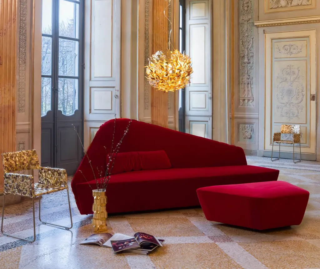 "Verlaine" is an elegant and sensuous sofa, designed by Lievore Altherr and manufactured by Driade, with a polimex and MDF structure, different densities polyurethane foams padding and wooden feet. Velvet, fabric or leather removable covers. Sofas will be equipped with a back cushion with a removable cover. Velvet and satin version can be provided on demand with a silk profile available in the following colors: white, red, grayish beige, dark blue, light gray, black and ivory. Indoor use only.DIMENSIONS:: D. 38.9", W. 106.3", H. 42.1", Seat H. 17.3".A smaller version is also available with these dimensions: D. 38.5", W. 90.5", H. 40.1", Seat H. 17.3". ALBERTO LIEVORE (Buenos Aires, 1948) and JEANETTE ALTHERR (Heidelberg, 1965) begin in 2016 after a 25 year trajectory as Lievore Altherr Molina. The Barcelona-based studio specializes in product design and development, strategic consulting, creative direction, art direction and ephemeral architecture for internationally recognized design companies such as Arper, Andreu World, Vibia, Tribu, among the others.Lievore Altherr studio develops projects using an established strategy: a creative concept integrating product design and its communication.This holistic approach, humanist character, and the search for the essential in their projects – combined with a sensibility that transmits harmony and balance – characterize Lievore Altherr studio's design.