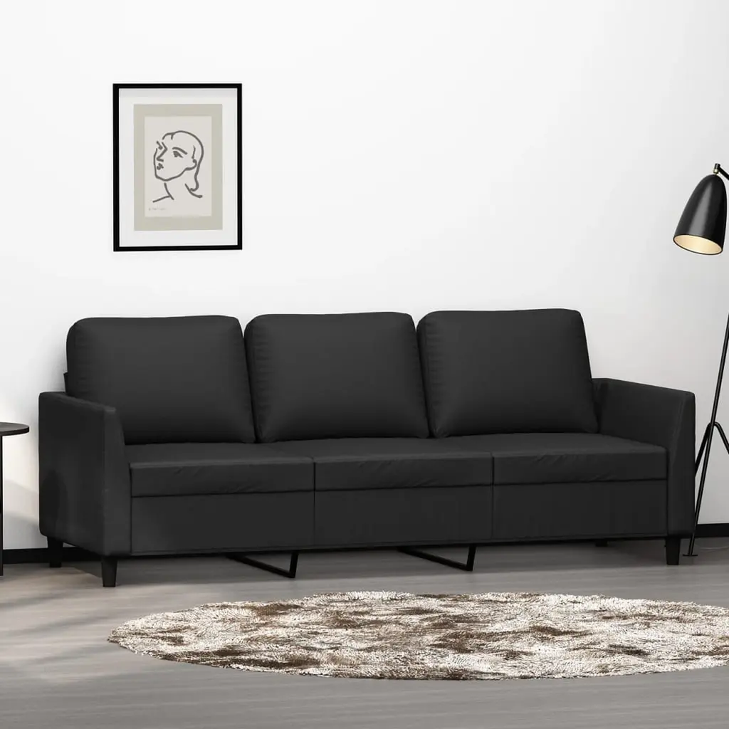 This 3-seater sofa is a cozy spot for gatherings in living rooms, lounges, or chill zones. With a sleek black faux leather finish, it mixes modern style with practicality, making it a great addition to your home. Contemporary Style: The modern design features clean lines and a minimalist vibe, making this sofa perfect for any room. Whether it's for chilling or socializing, its good looks stand out.Stain-Resistant Upholstery: The faux leather fabric is stain-resistant, so it's easy to maintain and keeps your sofa looking fresh. Ideal for busy families.Roomy Seating Capacity: With 78.7 in in width, this sofa easily accommodates three people, making it ideal for family gatherings or movie nights.Durable Frame and Cushions: Built with a solid frame and comfy cushions, this sofa provides great support and lasts a long time, keeping it a highlight in your living space for years to come.Versatile Usage: Perfect for reading, chatting or binge-watching Netflix, this sofa is great for a variety of activities, livening up your living area.