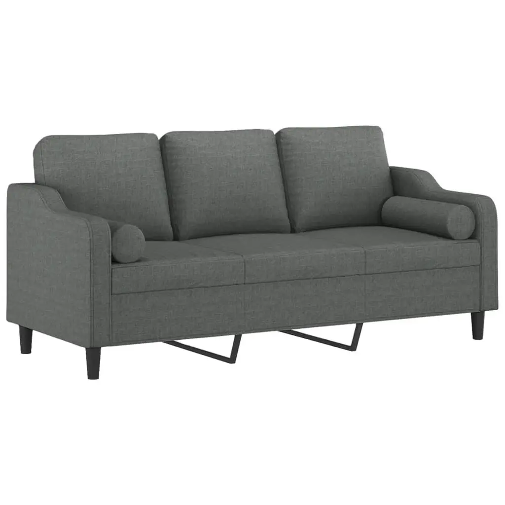 This 3-seater sofa combines style with comfort. It creates a cozy space for hanging out, making any living area feel inviting. Dressed in chic dark grey fabric, this sofa offers a sophisticated touch that encourages family and friends to gather for a good chat or a fun movie night. Modern Aesthetic: Clean and minimalist, fits in with any decor style. Durable Upholstery: Made from 100% polyester for long-lasting use. Comfy Seating: Soft padding and breathable fabric for sitting comfortably for ages. Functional Design: Comes with two snazzy throw pillows for extra comfort and support. Dimensions: With a roomy width of 70.9 in, it’s just right for 3 people to kick back and relax.