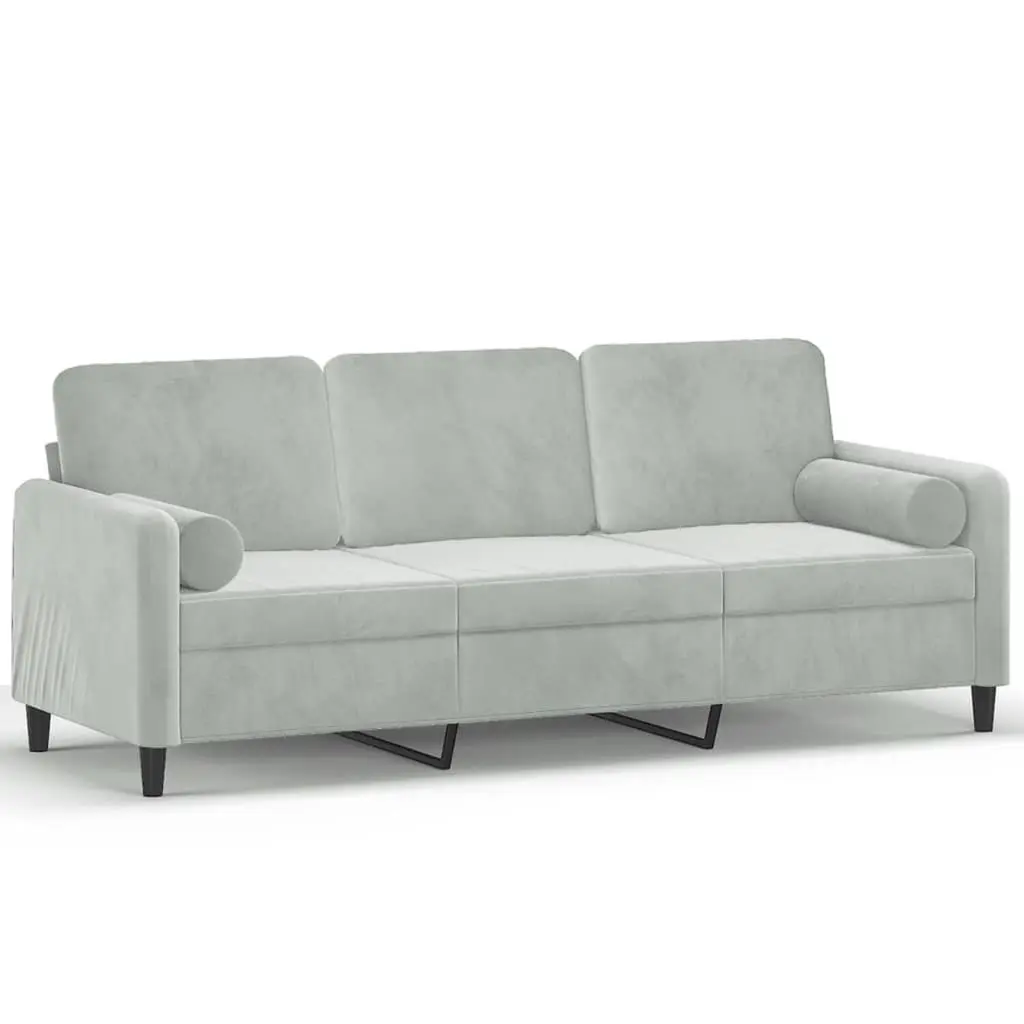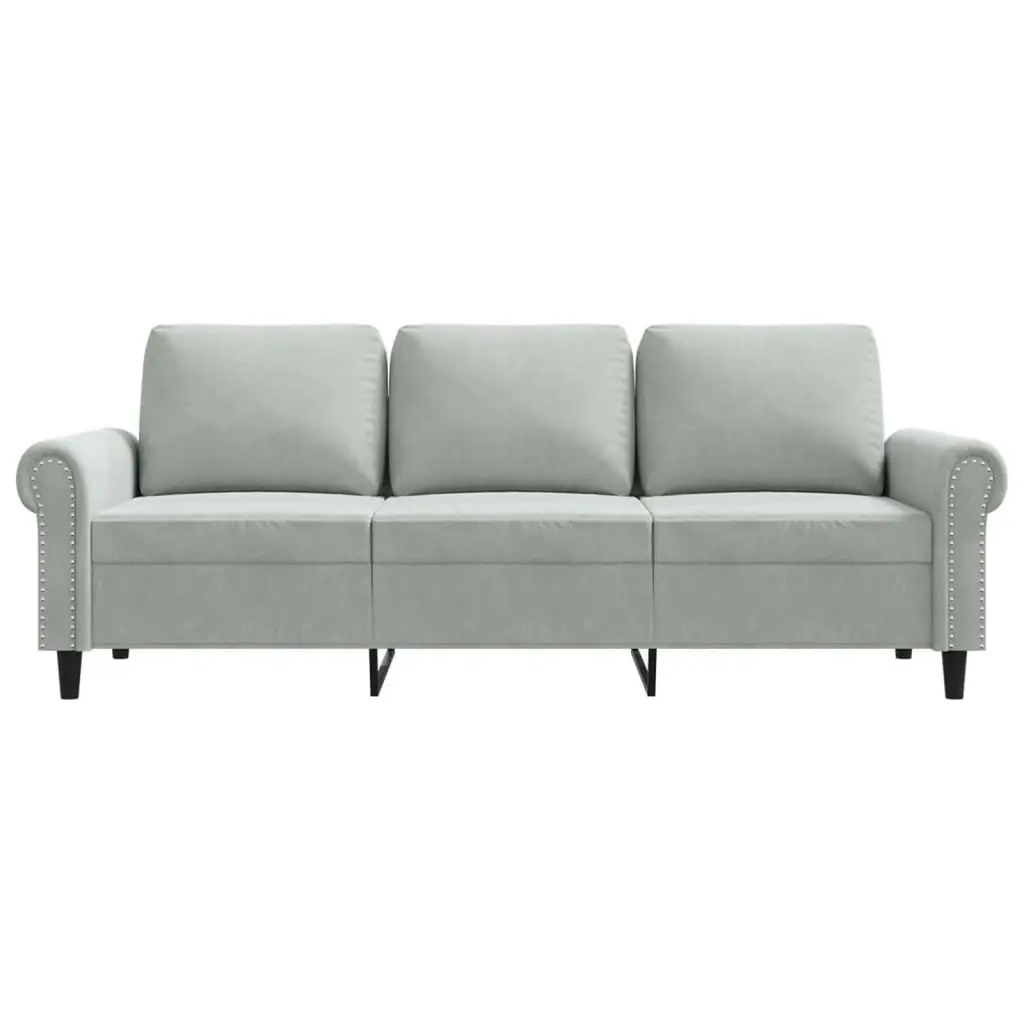 This light grey velvet 3-seater sofa turns any living space into a peaceful retreat. Its plush velvet fabric has a sophisticated feel and invites you to kick back, making it great for gatherings, chill nights in, or just enjoying a good read after a long day. With its inviting color and modern design, this sofa fits in effortlessly with all kinds of home styles while providing comfy seating for friends and family. Luxurious Velvet Fabric: The light grey upholstery is soft to the touch and adds a chic look. Padded Armrests: These comfy armrests are perfect for hours of chilling. Sturdy Steel Frame: The solid metal frame holds up to daily use, supporting up to 727.5 lb. Generously Sized Seating: At 83.5 in wide, it’s fantastic for gatherings of three. Easy Maintenance: The removable seat cushions with zippers make cleaning a breeze.
