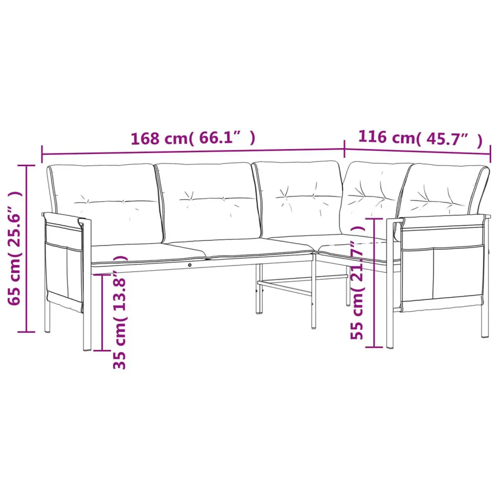 This garden corner sofa mixes a modern vibe with practical features, making it a top choice for your outdoor area. Built from sturdy powder-coated steel and breathable textilene fabric, it gives you a stylish and comfy spot for hanging out with family and friends in your garden, patio, or balcony. Robust Frame: Built with strong powder-coated steel, this sofa ensures stability and durability, perfect for daily outdoor use, even in varied weather.Comfortable Seating: The designed cushions are all about maximum comfort, letting you unwind and enjoy your outdoor experience.Easy Maintenance: Cushions with zippers make for easy removal and cleaning, keeping your sofa fresh and looking great.Capacity for Many: Designed to seat up to five people comfortably, it's perfect for gatherings, chats, or a sunny afternoon.Stylish Appearance: The anthracite color adds a modern touch, while its clean lines enhance the overall look of your outdoor space.