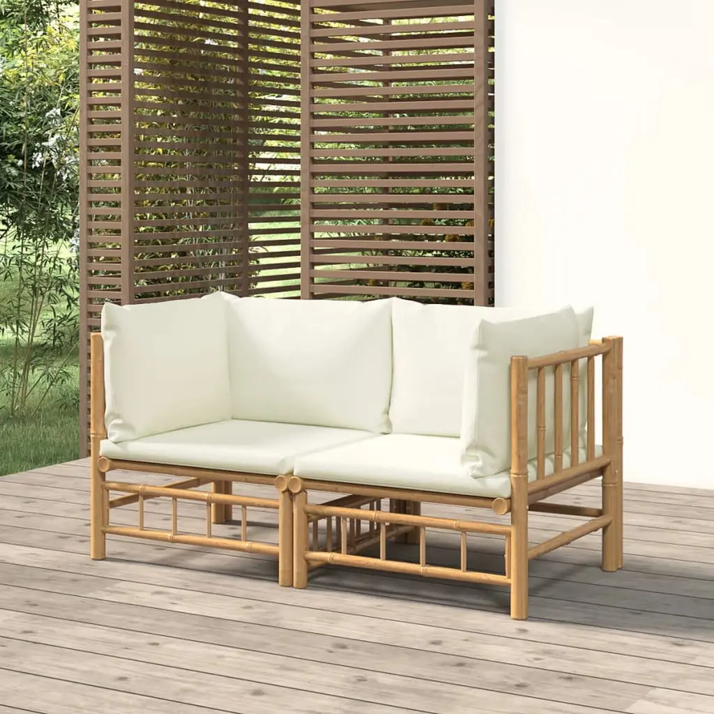 Vidaxl Garden Corner Sofa Cream White, Natural Bamboo