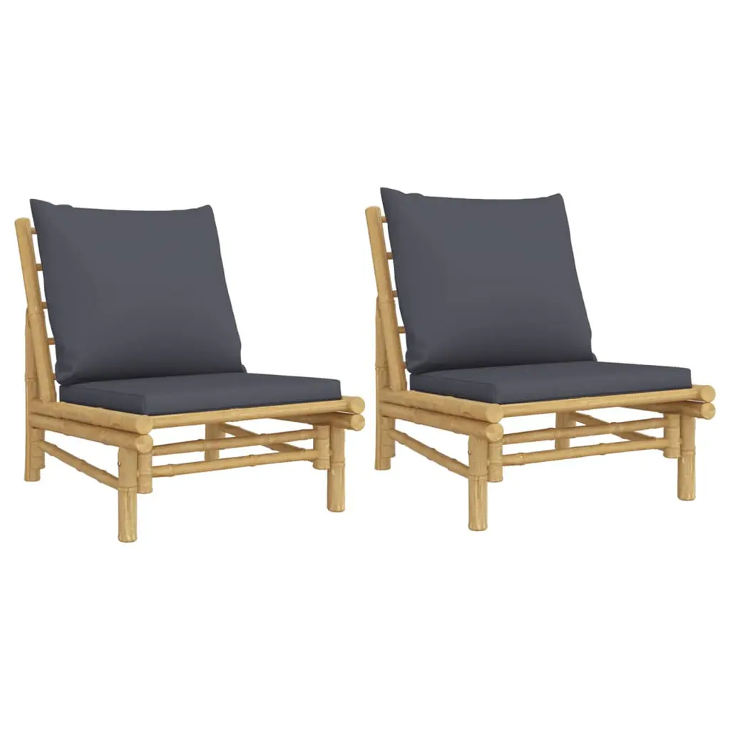 Vidaxl Garden Middle Sofa Dark Grey, Natural Bamboo Bamboo Medium