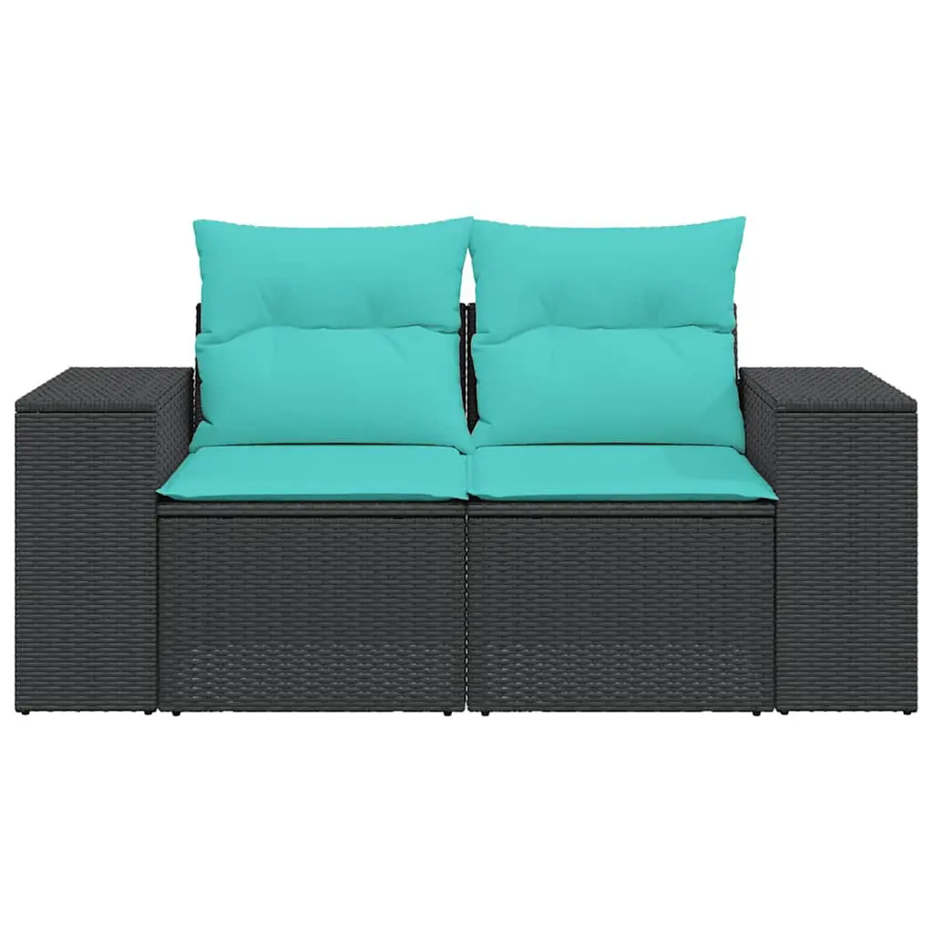 This modern outdoor sofa mixes style with practicality, featuring a sleek black poly rattan design and soft blue cushions. It’s perfect for chilling on patios, balconies, or in gardens, offering a comfy spot for gatherings or just kicking back. Modular Design: The modular setup lets you configure it easily to suit any outdoor vibe, making it a versatile addition to your garden.Weather-Resistant: Made from sturdy materials, this sofa holds up against the elements, perfect for outdoor lounging year-round.Padded Comfort: Enjoy thick cushions designed for outdoor use, providing a comfy experience whether you’re hosting or just chilling out.Durable Frame: Built with a strong powder-coated steel frame, this garden sofa supports up to 242.5 lbs while looking smart.Removable Cushion Covers: Wash and keep your cushions fresh with removable covers that zip off easily.