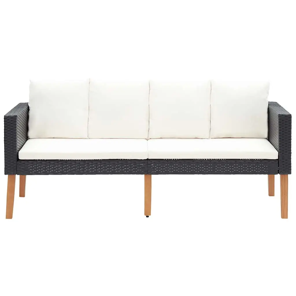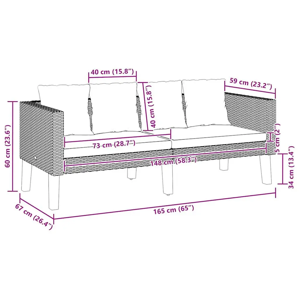 This 2-seater garden sofa mixes stylish flair with practical design. It creates a welcoming spot for chilling and hanging out. With sleek lines and a modern black and cream look, it really enhances your outdoor or indoor space and is a brilliant addition to your balcony or garden. Weather Resistant: Built from tough poly rattan and powder-coated steel, this sofa withstands outdoor elements, making it a must-have in your outdoor furniture collection for years. It’s solid and reliable, giving you confidence on sunny days or light rain.Comfy Cushions: With four plush cushions filled with polyester fiberfill, this sofa provides great support for two, perfect for laid-back afternoons with friends or family. The removable zip covers make cleaning simple, keeping your seating fresh and inviting.Smart Look: The sleek black finish and cream accents give this garden sofa a stylish touch. Its modern design fits various decors, making it a flexible choice for both trendy and traditional homes.Lightweight Modular Design: The modular design makes it easy to change your setup as needed. It’s perfect for adding or moving pieces around in your outdoor lounge, boosting usability and style.Low Maintenance: Just a quick wipe with a damp cloth keeps this sofa clean. The weather-resistant features mean it stays in top shape, even when left outside, ready for your next get-together.