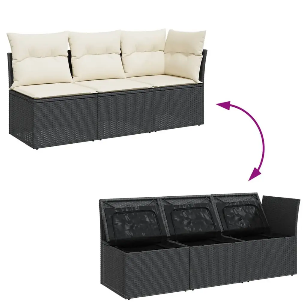 This 3-Seater Garden Sofa mixes style with function, making it a great fit for any outdoor spot. Its modern design, featuring sleek poly rattan and comfy cushions, adds to garden spaces while giving you a perfect place to hang out with friends and family. Modular Design: Set up the garden sofa however you fancy, making it fit your space just right whether you want a little corner or a big hangout. Weather-Resistant Materials: Built to last with UV and water-resistant materials, this sofa can handle outdoor conditions like a champ. Enjoy your time outside without stressing about the rain or sun ruining it. Storage Solution: Each seat's got a waterproof bag for storing cushions or other outdoor stuff, helping keep your area tidy while keeping your things safe from the weather. Easy Maintenance: Cushions come with removable covers for easy cleaning. Just unzip, wash, and pop back on when you want a fresh look. Versatility in Use: Ideal for any gathering spot, from balconies to gardens, this sofa shines in all chill-out scenarios. Host a barbecue or unwind under the stars, enhancing your lifestyle beautifully.