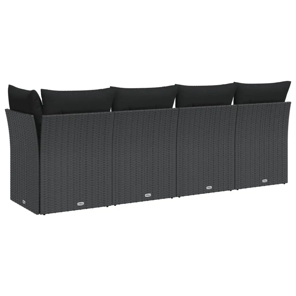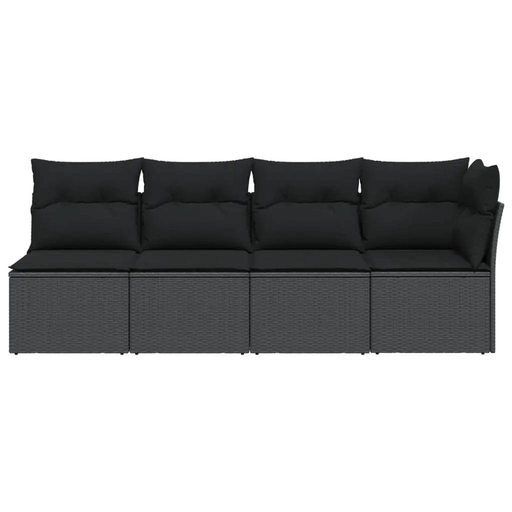 This modular outdoor 4-seater sofa set is the perfect combo of style and practicality. It's just what you need to create a comfy hangout spot in your garden, terrace, or balcony. The sleek black poly rattan paired with tough powder-coated steel gives it a modern touch, making it great for lounging with friends and family while also adding to your outdoor vibes. High-Quality Materials: Made from UV-resistant PE rattan, this furniture can take on even the sunniest days while keeping its fab looks, perfect for outdoor use over the long haul.Comfortable Cushions: Plump cushions ensure you’ll be comfy whether you're entertaining or just chilling with a book.Versatile Configuration: You can change things up however you like with the modular bits, letting you set up your space for casual hangouts or fancy occasions.Outdoor Ready: Built for the outdoors, it's not only weather-resistant but also keeps looking good with minimal hassle, making it a breeze for homeowners.Simple Assembly: This set comes with clear instructions and all the tools you need, so setting it up is a breeze and you’ll be enjoying your new seating in no time.
