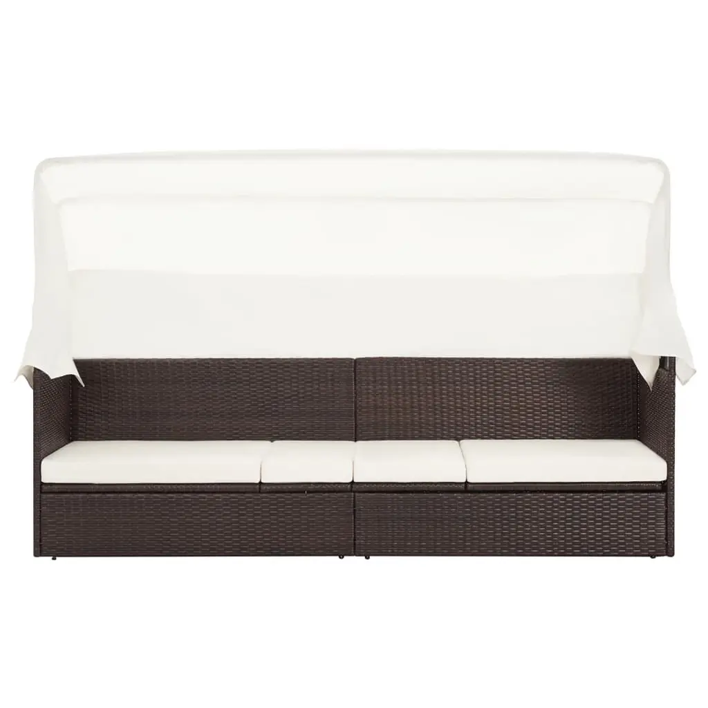 Vidaxl Garden Sofa Brown, Cream White Pe Rattan, Steel, Fabric Large