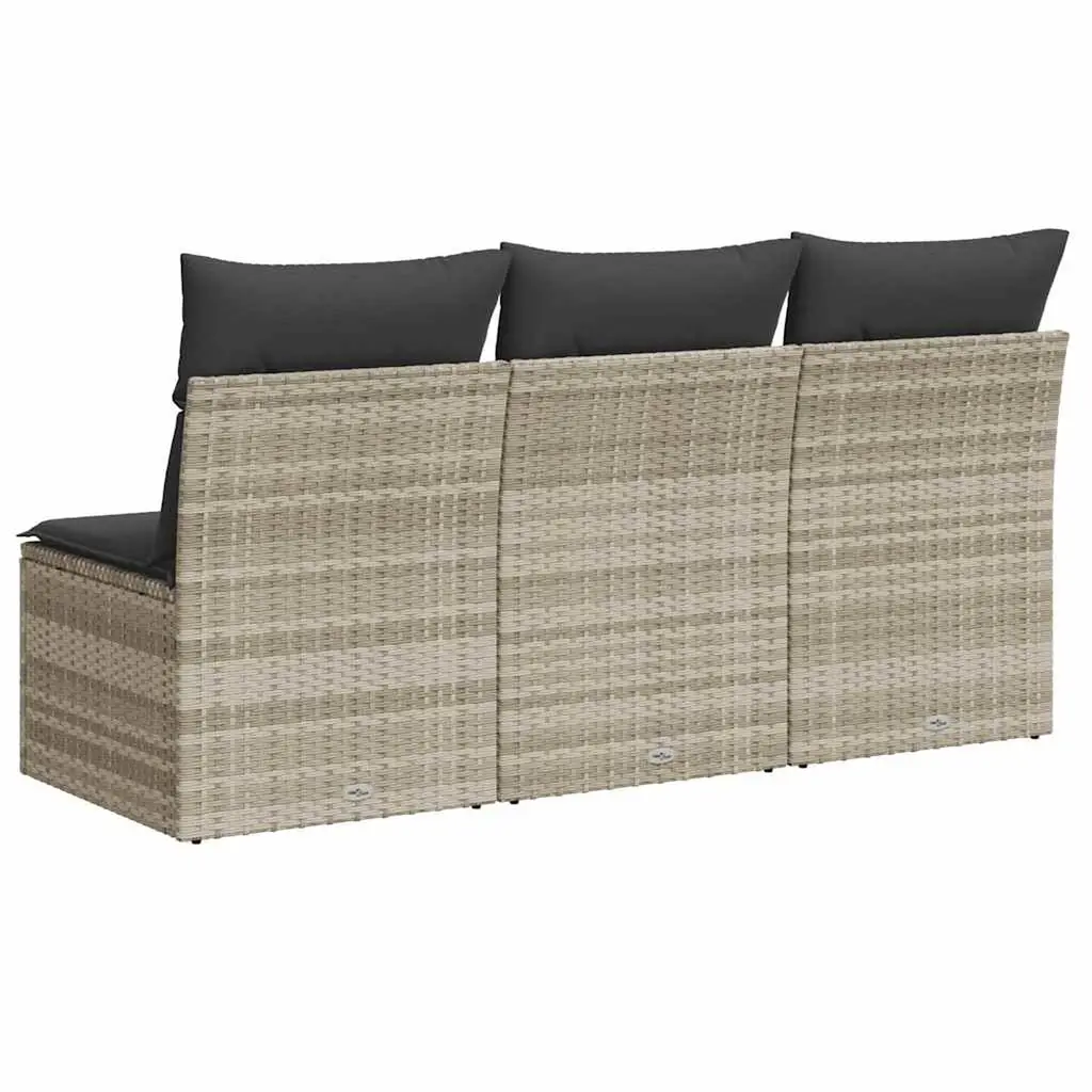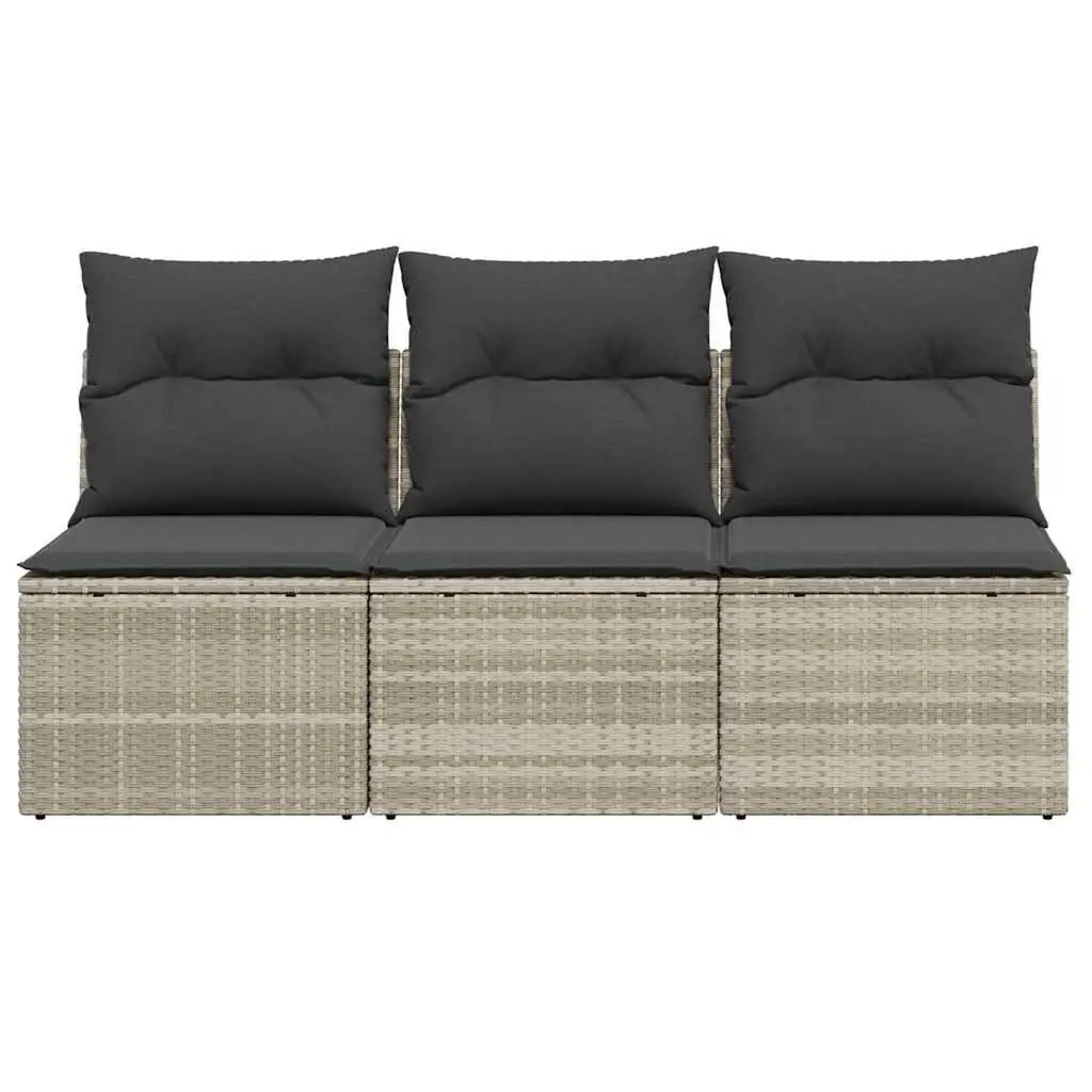 This modern 3-seater garden sofa embodies the spirit of outdoor living with comfort and style. The light grey shade adds brightness, making it a welcoming centerpiece for gatherings on your balcony or patio, perfect for enjoying fresh air. Modular Flexibility: The sofa's modular design lets you rearrange it to fit your space, offering versatility in outdoor setups.UV and Water Resistance: Built from durable materials that resist UV rays and water, ensuring long-term enjoyment outside.Comfortable Cushions: Each seat comes with plush cushions covered in weather-resistant fabric, perfect for relaxing on sunny days.Practical Storage: Each seat has handy storage compartments underneath, keeping your outdoor essentials safe and ready to use.Stylish Design: The sleek finish of the poly rattan adds a modern twist, fitting seamlessly into any garden or patio decor.