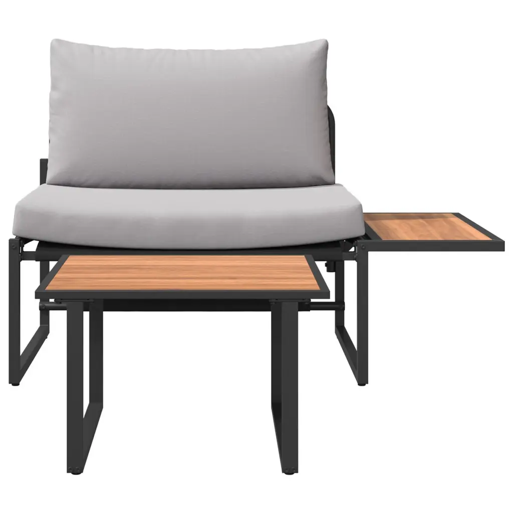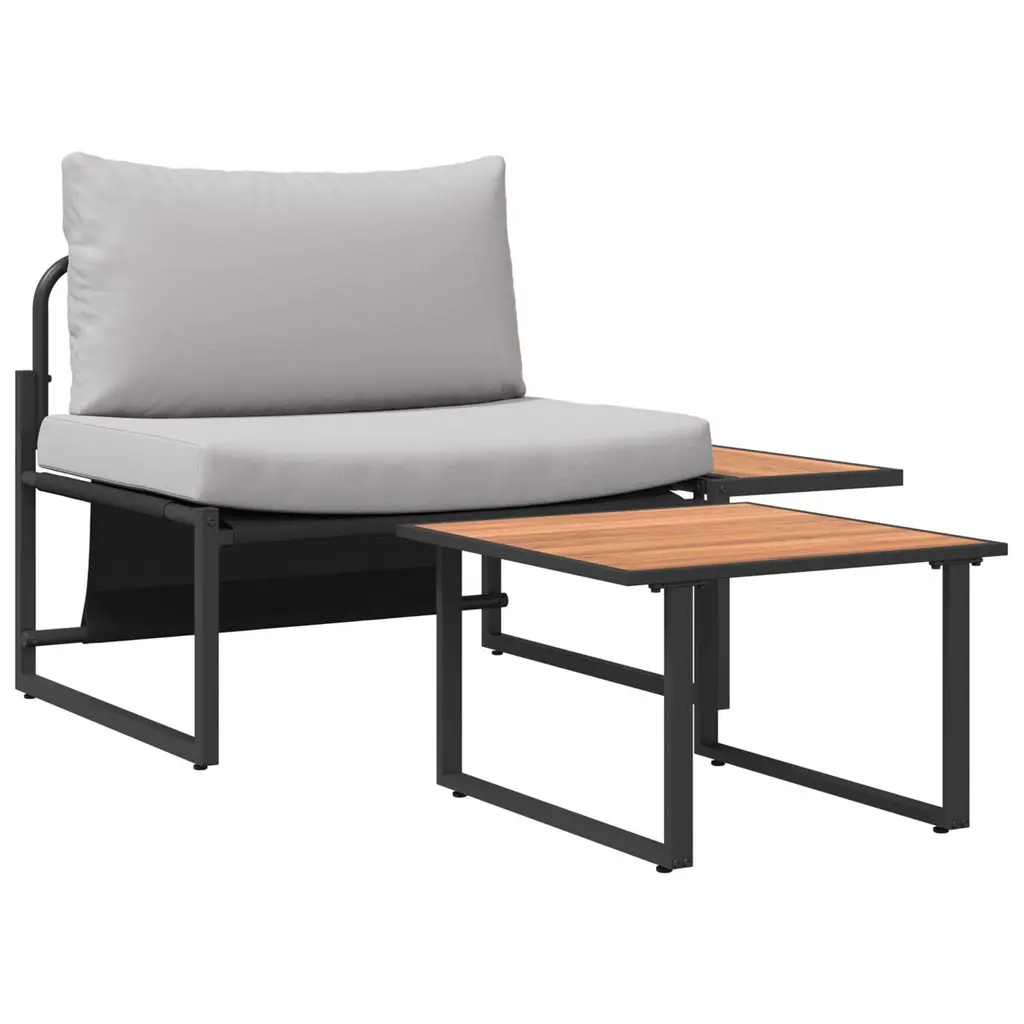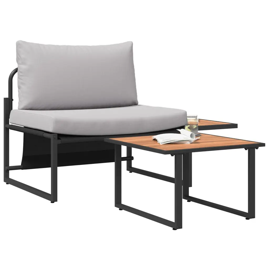 This Garden Sofa Set is the epitome of modern outdoor elegance, featuring a simple yet practical design. Built for garden and terrace use, its strong steel frame ensures durability while the solid acacia wood surface adds a rustic vibe. The contrasting dark legs elevate its chic look, making it a standout addition to any outdoor space. Perfect for summer parties or chill evenings, this set brings both comfort and style to your outdoor hangout. Robust Steel Frame This sturdy construction guarantees dependable support, making it a reliable choice for outdoor furniture that can handle different weather. Solid Acacia Wood Surface This naturally beautiful surface gives off a warm and welcoming vibe. With its fine grain and rich brown color, it adds sophistication and contrasts beautifully with the sleek black steel legs.Back Type: Presentable Finished to perfection, this back design ensures every side of the garden sofa set looks great, making it a centerpiece from any angle in your outdoor space.Rectangular Shape This shape allows for plenty of seating and a spacious tabletop, making it perfect for social gatherings or lounging solo. It fits seamlessly into various outdoor areas, whether it’s a cozy balcony or a large deck.Assembly Details All you need is a screwdriver and a buddy, ensuring a stable structure once put together for long-lasting use. Maximum 242.51 lb per seat.