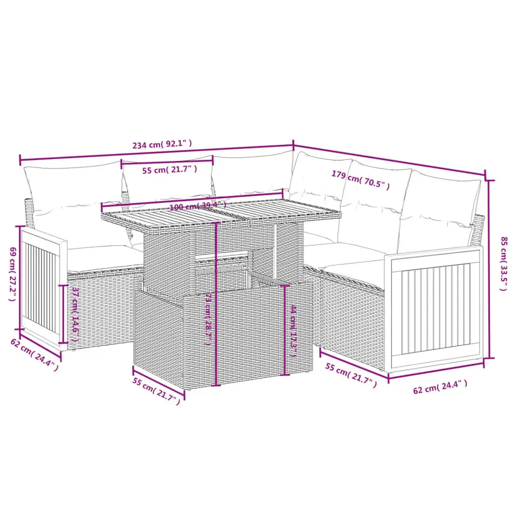 This 6 Piece Garden Sofa Set mixes style with practicality, perfect for anyone wanting to jazz up their outdoor area. With classy beige cushions and sturdy grey poly rattan, it’s spot on for relaxing, entertaining, or dining with family and friends, creating a warm vibe in your garden or patio. Adjustable Armrests: Adjustable armrests are all about comfort, letting you find the best position to chill during those warm afternoons. Flexible Modular Design: The modular set-up of this garden sofa lets you rearrange it easily, so you can tailor your seating based on the occasion or your space. Weather-Resistant Fabrics: Made with UV-resistant materials, this set is built to last, standing up to the sun and rain while keeping its bright looks. Easy Maintenance: The removable and washable cushion covers make cleaning hassle-free, which is essential for keeping your garden furniture looking fresh over time. Spacious & Comfortable: With generous seating for up to six people, perfect for gatherings. Deep seats and comfy cushions ensure relaxation for long hours in the sun.