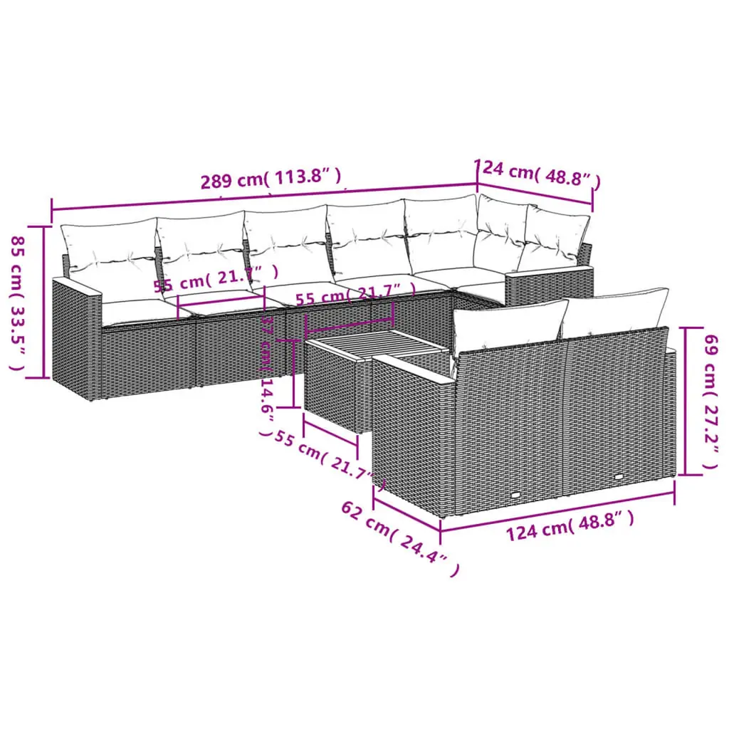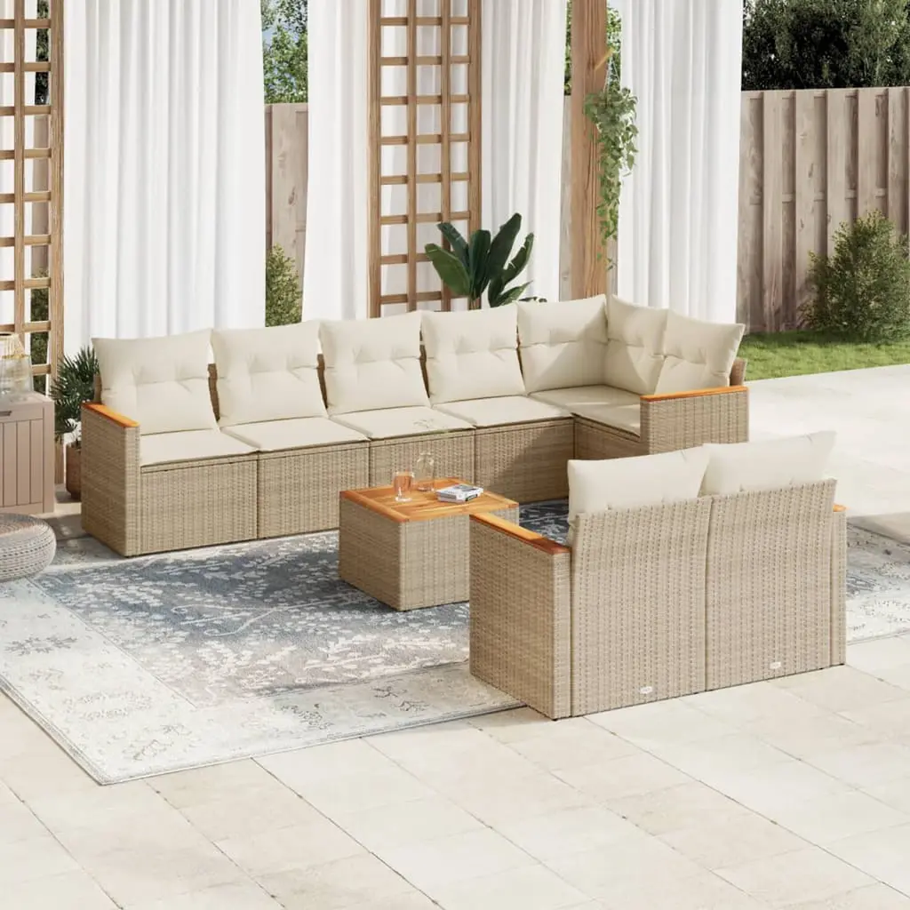 This 9 Piece Modular Garden Sofa Set brings together stylish looks and handy functionality, perfect for chilling outdoors, hosting friends and family while making your garden or patio stand out. Made from quality poly rattan and solid acacia wood, it’s got a modern vibe, turning it from just furniture into a piece that invites relaxation and fun in any outdoor setting. Modular Configuration: Each seating piece can be easily rearranged, allowing you to customize your outdoor layout depending on the occasion or space available. Imagine hosting a summer barbecue with friends or creating a cozy corner for intimate evening gatherings—this set adapts seamlessly. Weather-Resistant Build: Made with UV-resistant and water-resistant materials, the sofa set stands strong against the elements, so you can use it outdoors any time of year. The cushions can handle sun exposure without fading, keeping their fresh looks. Storage Solutions: Each seat has handy storage space for stashing away cushions or outdoor bits and pieces neatly, so you can keep your patio tidy and stylish. Comfort and Support: The sofa set includes soft cushions for long-lasting comfort while being removable for easy cleaning, keeping your outdoor area inviting and super comfy. Elegant Style: With a lovely beige and cream finish, this sofa set boosts the visual charm of any garden or patio, going well with different outdoor decor styles while making your outdoor space look just as welcoming as your indoor spots.