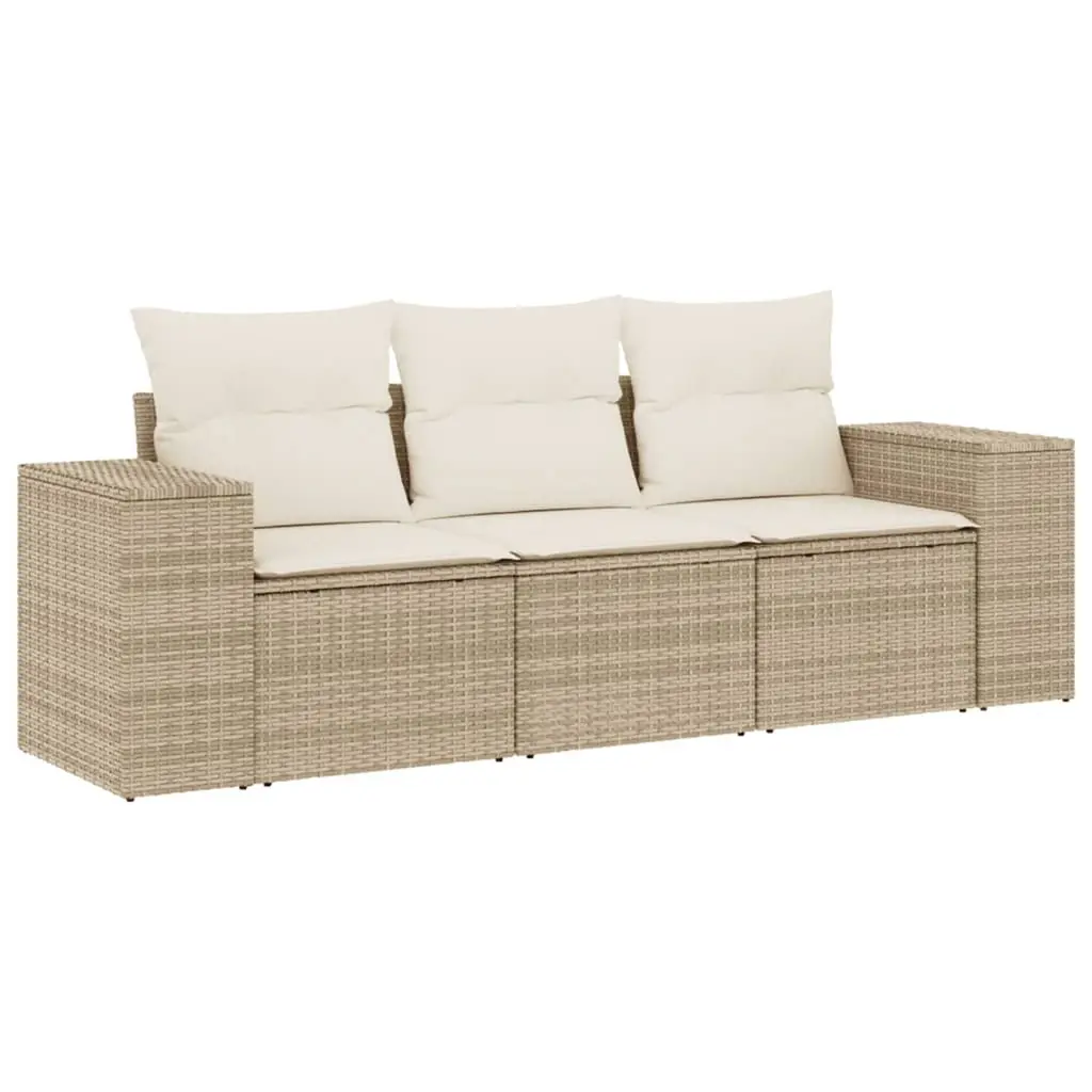 Vidaxl Garden Sofa Set Beige, Cream White Pe Rattan Three-Seater