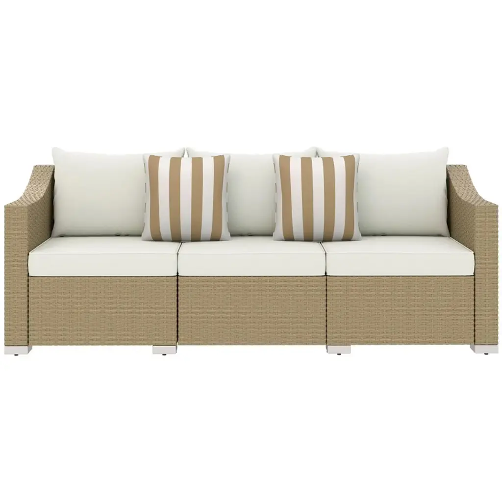 This 2 Piece Garden Sofa Set is the ultimate modern outdoor furniture, made for both style and practicality. Ideal for backyard gatherings or chill evenings on the balcony, it fits beautifully with trendy outdoor vibes while giving you comfort and lots of seating for socializing. Modular Arrangement: The modular design lets you mix and match seating to fit your outdoor space just right.Enhanced Comfort: With plush cushions in weather-resistant fabric, every seat is comfy for sunny afternoons or relaxing evenings under the stars.Durable Construction: Built with poly rattan and powder-coated steel, this set is made to handle outdoor use. Its UV resistance prevents fading, while weather-resistant materials keep it looking great in all conditions.Effective Storage: Comes with clever storage solutions with waterproof bags to keep your cushions safe from the weather, so your outdoor area stays lovely.Easy Care: The removable cushion covers are easy to clean, so you can keep it looking fresh without any hassle.