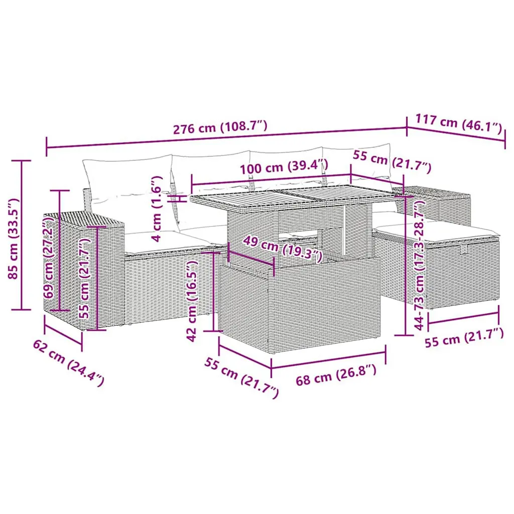This 6-Piece Outdoor Garden Sofa Set turns any balcony, patio, or terrace into a lovely hangout for socializing or chilling out. Made from strong poly rattan with a sleek black look, this sofa set combines modern style with practicality, meeting the needs of both casual loungers and those after stylish outdoor decor. Each piece is all about comfort, with thick cushions that give great support, making it a top spot for enjoying those warm summer days with friends and family. Modular and Adaptable: The furniture can be rearranged to fit all sorts of spaces, great for a big gathering or a chill chat.Luxury Seating Comfort: Every cushion’s crafted from weatherproof fabric, ensuring they stay soft and supportive.Durable Construction: Built with powder-coated steel frames, this sofa set stands up to the outdoor conditions while keeping a smart look.Stylish Aesthetics: The mix of rattan and modern style gives it a contemporary vibe, making it spot-on for any outdoor setting.Practical Storage: The included water-resistant storage bags keep cushions safe when not in use, helping to keep them clean and dry.