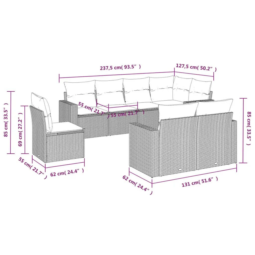 This modern 8-piece garden sofa set brings top-notch comfort and style to your outdoor area, turning patios or balconies into luxury lounging spots. The striking mix of sleek black and bright blue pieces creates an inviting atmosphere perfect for gatherings, relaxation, or just soaking up the great outdoors, suitable for all kinds of settings without compromising looks or durability. Modular Design: You can customize the arrangement to fit your space, whether it's a big deck or a snug balcony. Adjust the layout for your gatherings, mixing comfort with style. Weather-Resistant Cushions: Each cushion has weather-friendly fabric, so they'll look good no matter what the weather's like. Enjoy this set all year round without worry. Superior Comfort: The generous seat depth means you can really relax while outside. Wide armrests add to the comfort, making it a great place to chill after a long day. Durable Construction: Built from UV-resistant materials and powder-coated steel, this garden sofa set is built to last. Its sturdy frame provides solid support, ensuring years of fun with family and friends. Easy Maintenance: The cushion covers can be removed and washed, making it easy to keep your outdoor furniture looking fresh. This thoughtful design means you'll spend less time on upkeep and more time enjoying your space.