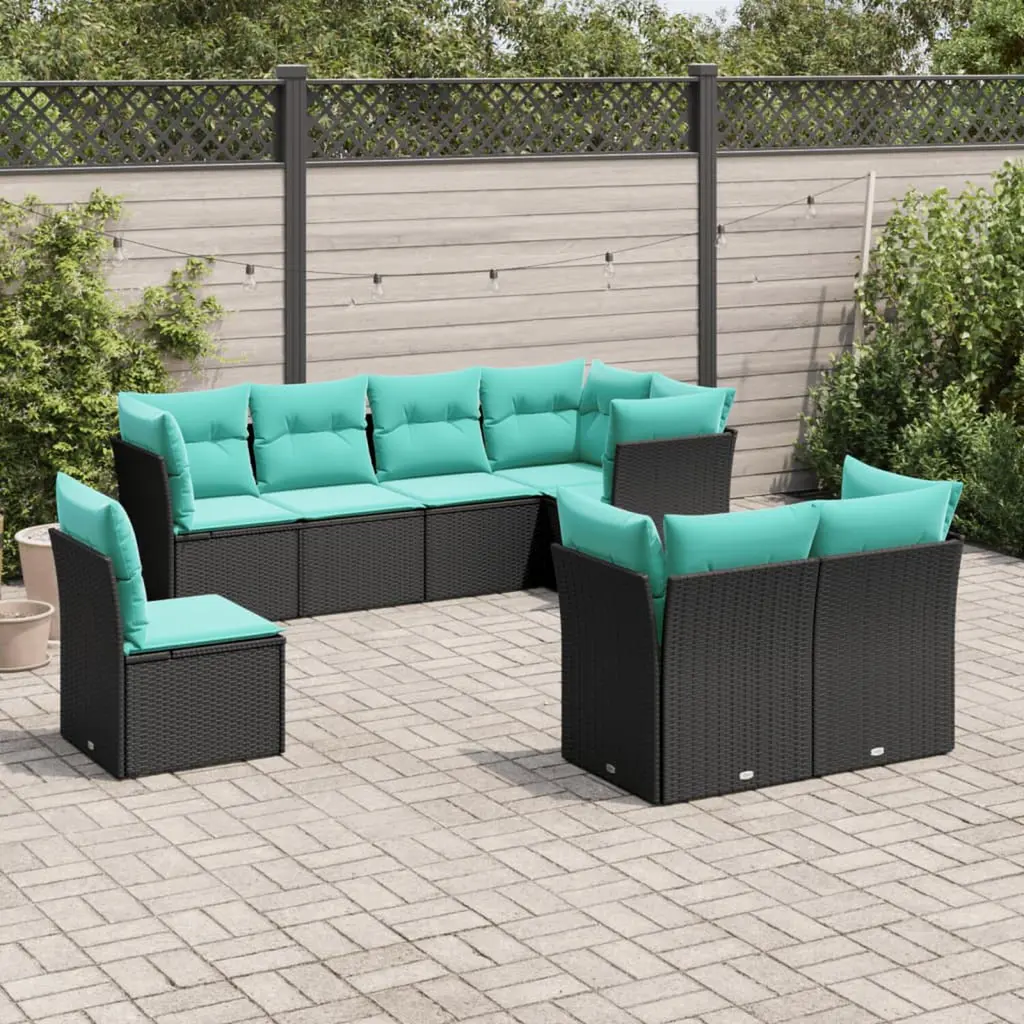 This 8-Piece Modular Garden Sofa Set is the bee's knees for outdoor spots like gardens, terraces, and patios. With a sharp black and blue look, it brings a modern vibe while giving you loads of seating for parties, get-togethers, or just a chill evening outside. Modular Design: Rearrange the furniture to make a setup that fits your outdoor area, whether it’s a cozy nook or a big lounge. This flexibility helps the sofa set adapt to different occasions easily, improving your outdoor experience.Durability: Built with UV-resistant materials, the sofa can take on harsh sunlight without fading or losing its shape. Enjoy outdoor seating all year round without worrying about wear and tear.Comfort: Each seat has thick cushions made from weather-resistant fabric for a comfy seating experience. The cushions come off easily, so cleaning up after a rainy day is a breeze.Stylish Appearance: With its sharp design and modern colors, this garden sofa set serves the purpose of seating while also looking great in your outdoor space. It’ll fit in with any style of decor.Easy Maintenance: Keeping this garden sofa set in top shape is easy; a quick wipe of the frames and a wash of the removable cushion covers is all it takes. This keeps your outdoor area looking fresh all year!
