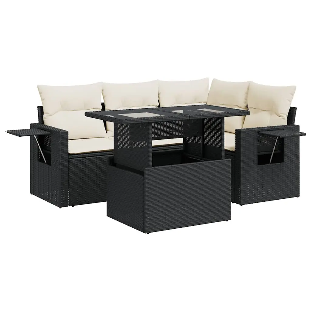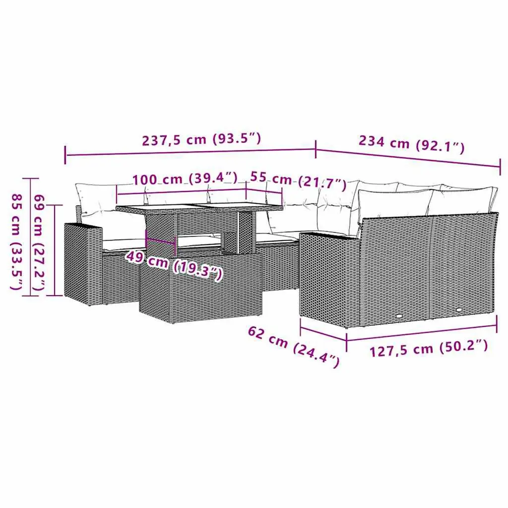 This 9 Piece Modular Garden Sofa Set merges style and function for outdoor spaces. Its sleek design adds a touch of sophistication to balconies, backyards, and terraces, making it perfect for lounging or social gatherings. The smooth surfaces and plush cushioning create a warm atmosphere, inviting relaxation and fun chats among friends and family. Convenient Modular Design: The modular layout means you can rearrange it easily, adapting it to any outdoor space or event. It’s a great choice for different social situations.Weather-Resistant Materials: Made from UV-resistant poly rattan and sturdy powder-coated steel, this sofa set is built to withstand various weather conditions while keeping its nice look and strength.Comfortable Cushions: Each piece has thick, comfy cushions that come off easily for cleaning, making maintenance a breeze and providing great comfort for long outdoor use.Large Seating Capacity: It seats up to nine guests, making it ideal for outdoor dinners, coffee breaks, or just lounging, which is a great addition to your family gatherings.Stylish Appearance: The modern black color with cream cushions creates a chic look that works with any outdoor décor, enhancing your outside living area.