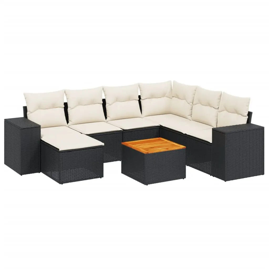 This 7-piece modular garden sofa set gives you a nice spot for outdoor relaxing and socializing, crafted with comfort and style in mind. The set combines sleek black poly rattan with cream cushions, creating a lovely contrast that boosts the look of any outdoor area, making it ideal for having guests over on a sunny patio or enjoying quiet evenings in the garden. Modular Design: The modular setup lets you configure it flexibly based on space, making it perfect for small or large outdoor areas. Create a cozy corner or an open setup easily to suit your needs and enhance your time outside. Weather-Resistant Materials: With UV-resistant materials, this set can withstand the sun’s rays without fading or degrading, ensuring it lasts even in tough weather. Enjoy stress-free outdoor lounging, as these sturdy materials are chosen for both comfort and durability. Removable Covers: For convenience, the removable and washable cushion covers keep your seating fresh. This feature boosts hygiene and lets you switch up the look of the sofa set easily, adapting it to various seasons or occasions. Ample Seating: Comfortably fits up to seven people, making it great for hosting gatherings, barbecues, or family events outdoors. Each piece is designed for comfort, allowing everyone to chill and have fun together. Modern Style: Featuring clean lines and woven textures, the modern design blends smoothly with different outdoor settings. This sofa set provides a chic yet functional solution for any outdoor lounging space, adding a touch of elegance to your garden or balcony.