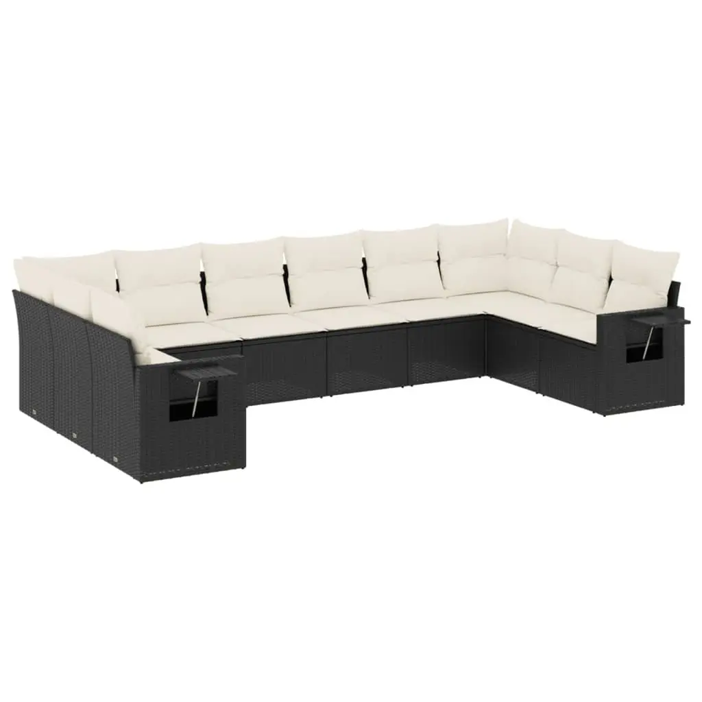 This 10-Piece Modular Garden Sofa Set is designed to elevate your outdoor game, combining style and function for a warm space to hang out. The sleek lines and modern colors fit right in on any patio, balcony, or terrace, giving you a chic spot to enjoy sunny days or starry nights, whether you’re chilling with family or having friends over. Every sofa piece comes with plush cushions, making sure you and your guests are comfy during long chill sessions. The removable covers are easy to clean, keeping it looking sharp. The modular design allows for endless arrangements, adapting to your backyard, balcony, or living room. Made from tough PE rattan and powder-coated steel, this set can take on the weather and stay functional. With UV resistance, it ensures the fabric won’t fade over time. This stylish set has a modern look, with a chic black and cream color scheme to suit all kinds of décor. Its contemporary vibes make it a standout piece in any outdoor space. Mega dimensions fit for hosting, this large sofa set seats up to ten people, offering loads of space for family and friends. Enjoy calm evenings outside or host guests for a memorable meal outdoors.