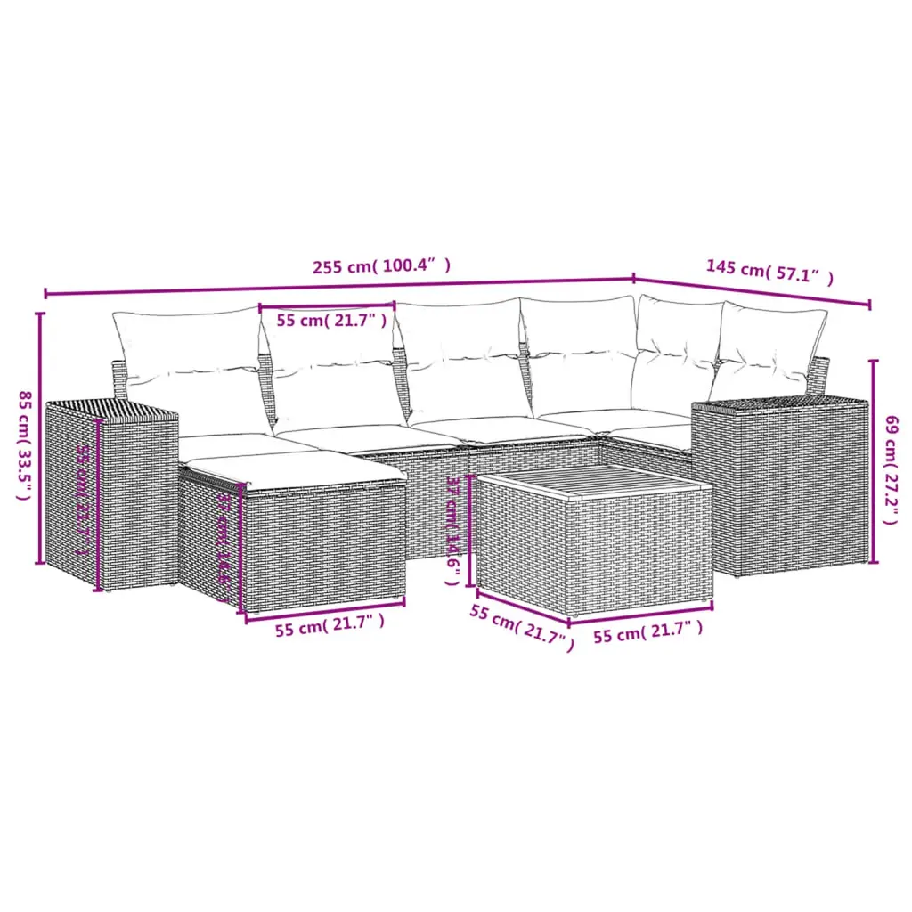 This 7-Piece Garden Sofa Set takes outdoor chilling to a new level of comfort and style. With its smart design and sturdy build, this flexible seating setup transforms any patio, balcony, or garden into a relaxed spot that invites fun and relaxation. Modular Setup: The modular design lets you easily change up the seating to fit your space or occasion, whether you're having friends over or enjoying a cozy evening outside. Enhanced Comfort: Six comfy cushions give excellent support and comfort, ensuring that relaxation is always a top priority, whether you're enjoying a sunny day or sharing warm chats. Durable Construction: Made from UV-resistant PE Rattan and powder-coated steel, this garden set stands up to the elements, so you can enjoy it season after season without worrying about wear and tear. Water-Resistant Design: The water-resistant fabric means that unexpected splashes won’t damage your furniture, making it perfect for outdoor lounging even in unpredictable weather. Stylish Aesthetic: With a modern black and cream color scheme, this garden sofa set adds a stylish vibe to your outdoor space while blending well with different decor styles.