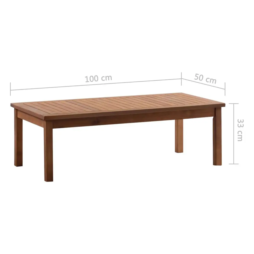 This Rustic Solid Acacia Garden Sofa Set cleverly mixes nature with practicality, designed to enhance your outdoor experience. It includes a rectangular coffee table, a roomy bench, and two chairs, with each piece showcasing the beautiful craftsmanship of solid acacia wood, making your backyard or patio look even nicer. Natural Material: This sofa set is expertly crafted from solid acacia wood, known for its durability and natural beauty. The wood grains give each piece a unique look, ensuring you get both a solid structure and something that looks great in your garden.Versatile Style: The rustic style of this garden sofa set blends with any outdoor décor, from modern to classic gardens. Perfect for hanging out with family or hosting friends, this lovely set transforms any spot into a comfy getaway, whether under the stars or enjoying the afternoon sun.Durable Build: With an oiled finish, these pieces can hold up against moisture, promising long-lasting use that withstands the elements. The oil treatment enhances the wood’s natural qualities, making it suitable for both indoor and outdoor use while staying stylish.Comfortable Seating: The design accommodates up to four people comfortably, perfect for laid-back lounging. Relax with a book or enjoy coffee with loved ones on the spacious bench, while the solid framework ensures stability and comfort.Easy Maintenance: Keeping this furniture looking good is a breeze; just wipe it down with a damp cloth. Protect your investment by covering it when not in use, blending practicality with style effortlessly.