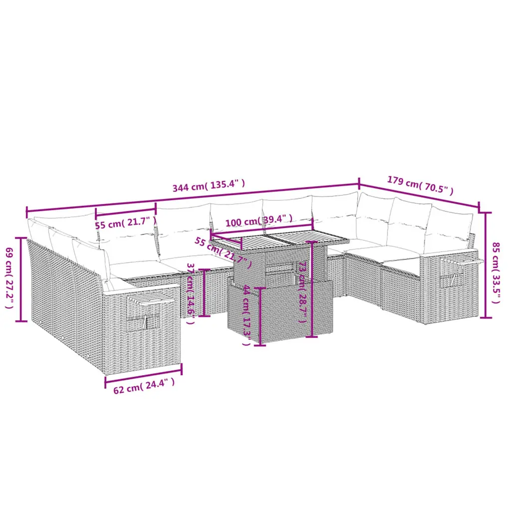 This 11 Piece Modern Garden Sofa Set is made to elevate your outdoor space, giving you style and comfort for hanging out with family and friends. With a chic grey shade and a contemporary design, it brings a sophisticated vibe to balconies, patios, and sunrooms while being functional and modern to create a lovely outdoor retreat. Versatile Modular Design: The modules can be rearranged for different occasions or spaces, letting you create a layout that fits your relaxing and socializing needs. This flexibility means you can make the most of your outdoor area while providing plenty of seating for guests. Exceptional Comfort: Each seat comes with plush, removable cushions covered in durable fabric, giving you a comfy spot whether you're lounging or catching up with friends. The cushions have the perfect firmness for long-lasting comfort. Easy Care and Maintenance: The removable cushion covers make cleaning a breeze, ensuring your garden sofa set looks fresh and stylish over time. Just grab a damp cloth to wipe down the frames for an effortless maintenance routine. Robust UV Resistance: Made from high-quality, UV-resistant materials, this garden sofa set keeps its bright look and structure even in direct sunlight. This durability means you can enjoy your outdoor setup without worrying about wear and tear. Thoughtful Assembly Design: Built for easy assembly, this set goes together with minimal hassle, needing just a screwdriver and two people, making it user-friendly for quick enjoyment.