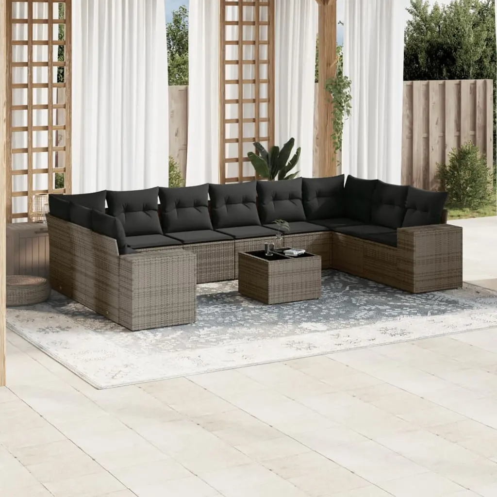 This 11 Piece Outdoor Garden Sofa Set is a sweet mix of style and comfort, designed to take your outdoor lounging up a notch with its slick and modern vibe. Made from tough PE rattan and topped with comfy polyester cushions, this set isn’t just good to look at; it’s all about max relaxation too. Perfect for get-togethers in your backyard or balcony, or just enjoying a quiet moment in the fresh air. Spacious Seating: This garden sofa set fits up to 12 people, making it perfect for large get-togethers, letting friends and family chill out together while enjoying the fresh air. Quality Materials: Built from weather-resistant PE rattan and sturdy powder-coated steel, this sofa set is designed to brave the outdoors while keeping its classy look. Adaptable Configuration: The modular design lets you rearrange the sofa pieces into different layouts, making it a doddle to create the perfect seating setup for any occasion. Convenient Maintenance: The removable cushion covers zip off easily, so you can wash them without hassle, keeping your sofa looking fresh and welcoming without using any harsh cleaners. Stylish Aesthetic: The sleek grey tones and modern design fit right into any outdoor decor, boosting the charm of your patio, deck, or garden space.