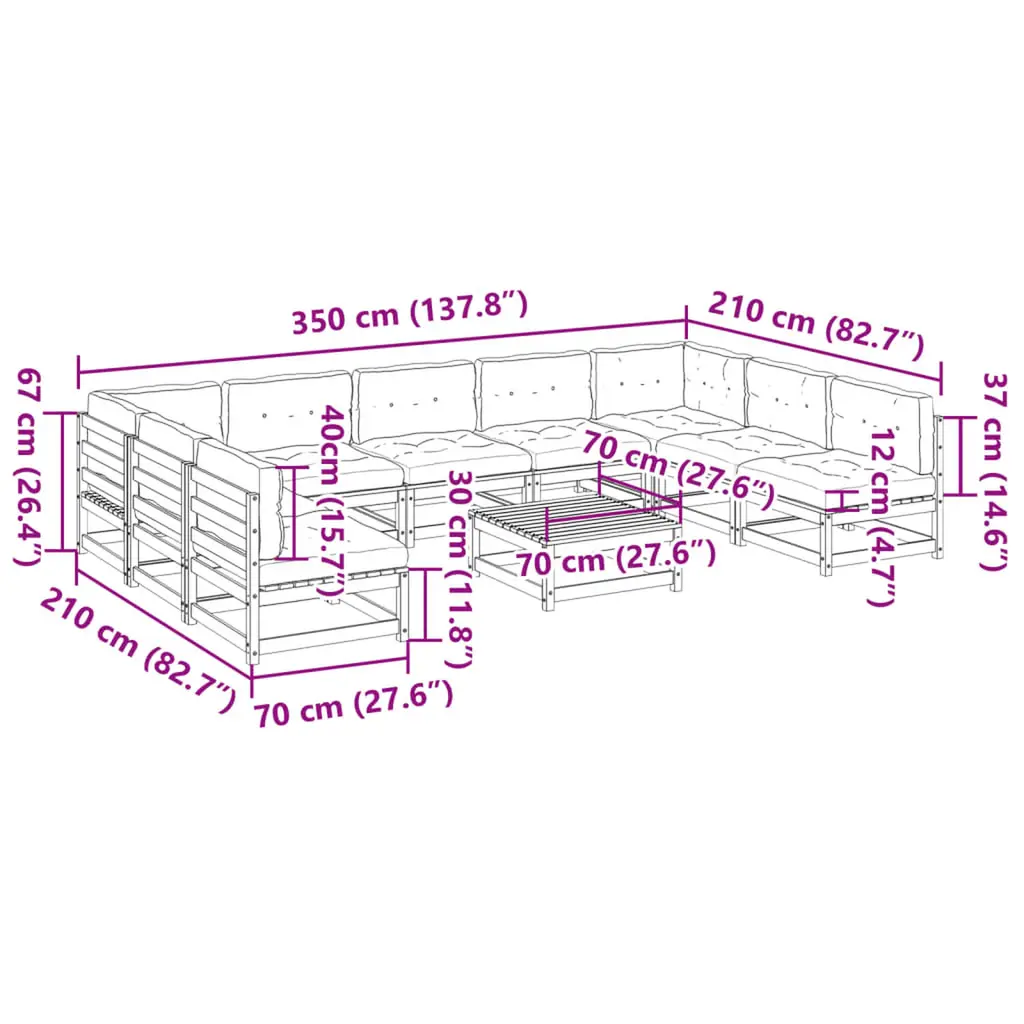 This 10 Piece Modular Garden Sofa Set mixes function with style, making it the perfect fit for any outdoor area. With its rustic design in a warm wax brown finish, it not only adds charm to your patio or balcony but also offers plenty of room for family and friends. The strong pinewood build guarantees longevity, while the lovely wood tones enhance the overall vibe of your garden furniture. Comfy Cushioning: The removable cushions are made from Oxford fabric for comfort and airflow, a must for warm days outside. Adjustable Seating: The modular build means you can move things around and set it up how you want. Weather Protection: Each piece is treated to hold up against the weather while keeping its good looks over time. Generous Capacity: With space for ten, this outdoor set is great for meet-ups, creating a cozy atmosphere for talking and chilling out. Textured Finish: The waxed finish protects the wood while showcasing its unique character and charm.