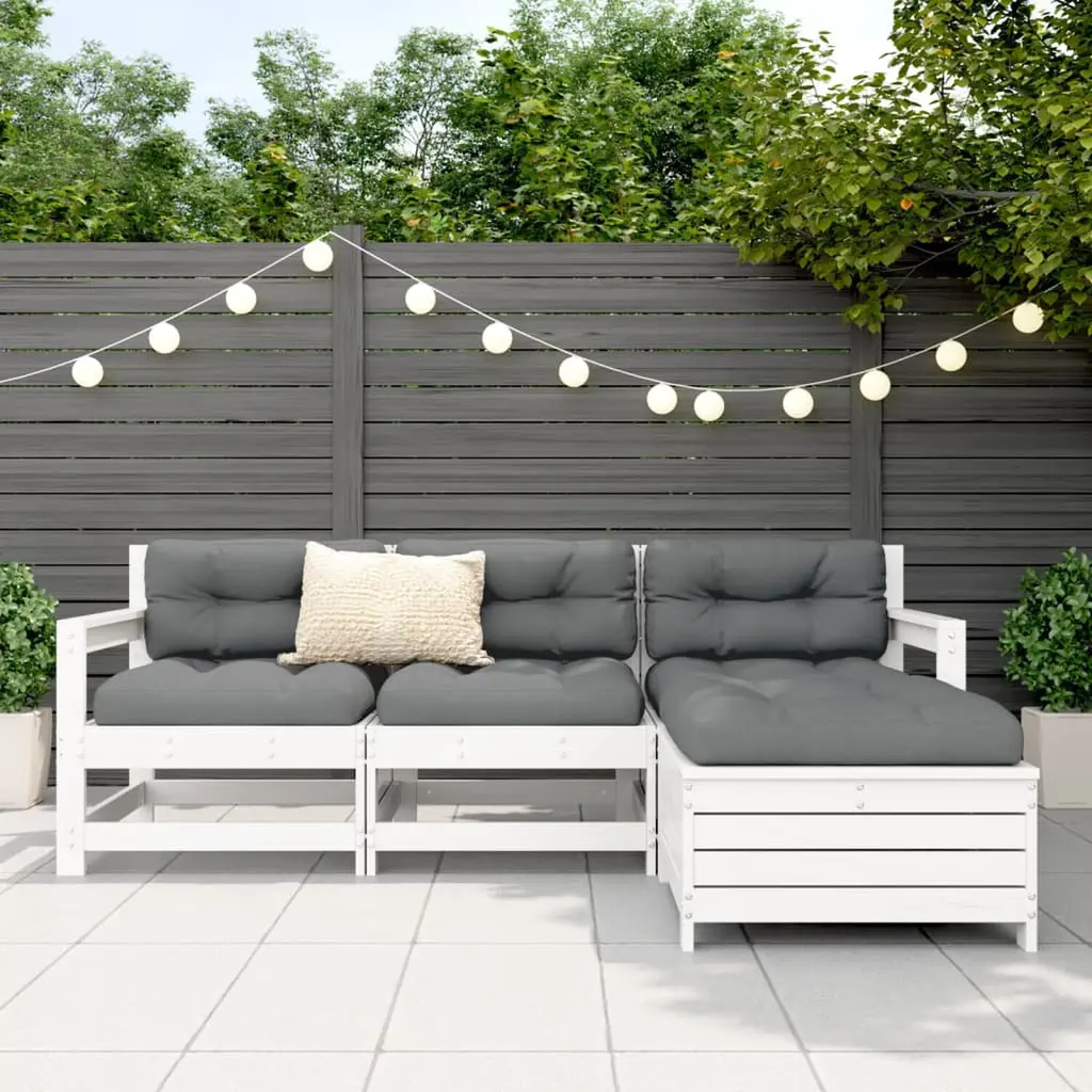 Vidaxl Garden Sofa Set White Solid Pine Wood, Plywood 4 Piece Set