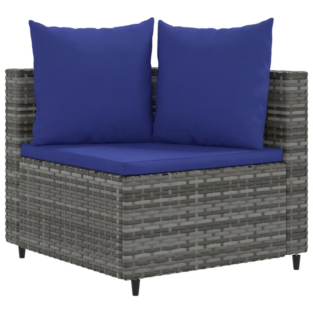 This 4-Piece Modular Outdoor Sofa Set mixes comfort with elegance, making it spot-on for terraces or balconies. Designed with a cool gray and blue color scheme, this adaptable furniture features a woven texture, adding style to your outdoor space. Perfect for lounging or socializing, its modular design allows you to switch things up to suit your taste. Modular Design: The modular setup lets you personalize your outdoor space, making it a breeze to create different seating plans for gatherings or relaxing on your own. Whether you’re entertaining or just enjoying the peace, this design gives you the flexibility to adjust as you fancy. UV-Resistant Materials: Made with strong, UV-resistant materials, this sofa set stands up to harsh sunlight, keeping its colors bright and its structure sturdy for ages. Rest easy knowing your outdoor area is shielded from the elements. Comfortable Cushions: Each piece comes with thick cushions made from weather-resistant fabric, tailored specifically for outdoor use. They guarantee maximum comfort whether you’re lounging with a book or hosting friends on a warm evening. Stylish Appearance: The modern vibe, highlighted with a classy gray surface and contrasting blue cushions, gives any garden or patio setup a sophisticated touch. It blends in easily with your existing decor, improving your outdoor area's overall look. Versatile Usage: Great for relaxing outdoors or social events, this set is made for all sorts of uses. Turn your balcony or terrace into a comfy haven for entertaining or chilling out after a long day.