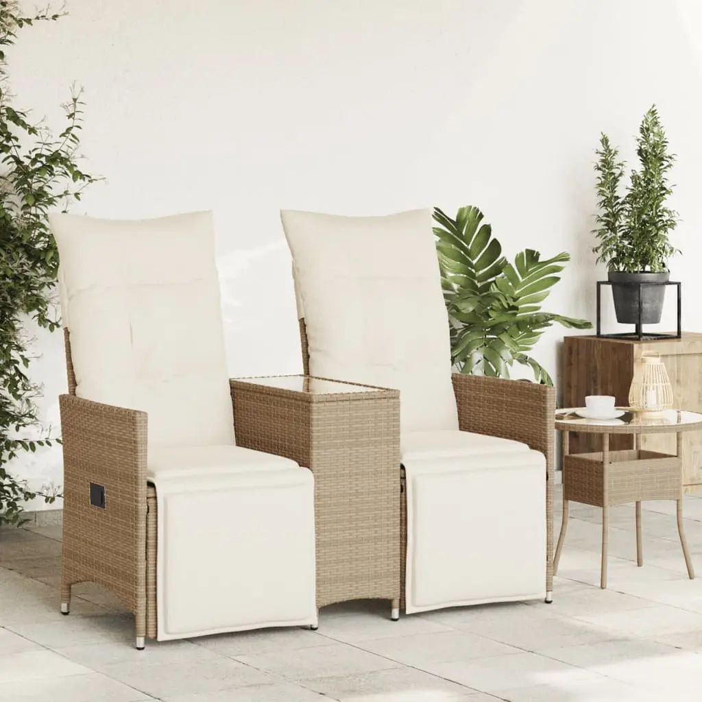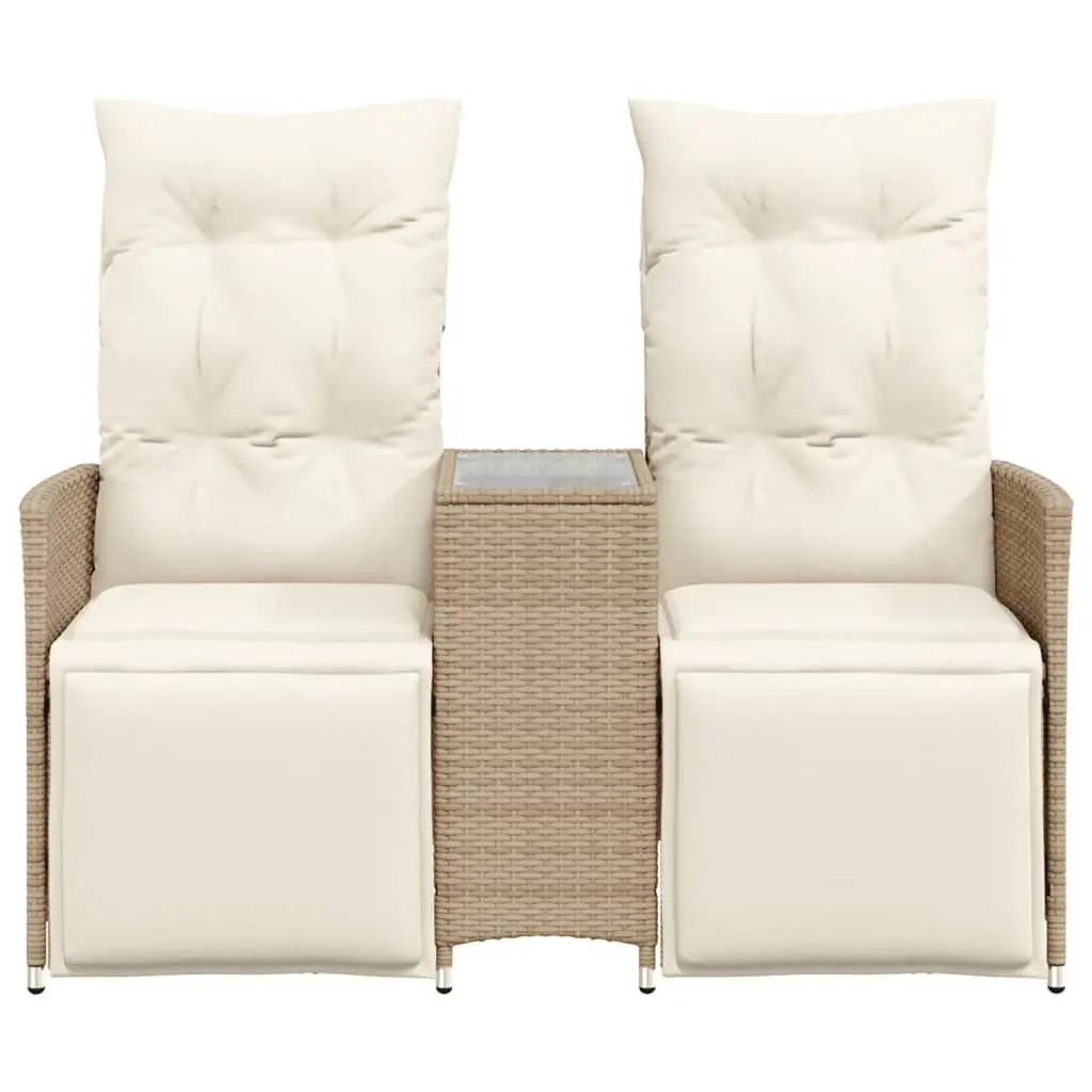 This reclining garden sofa strikes a great balance between style and comfort, making it a must-have for your outdoor space. Its roomy two-seat design in a chic beige finish fits right in with outdoor vibes, giving you a comfy spot to relax with family or friends – perfect for soaking up the sun or unwinding under the stars. Comfort: The plush cushions make sure your outdoor hangs are not just stylish but super comfortable, allowing you to lounge for hours without feeling any discomfort.Adjustable Backrest: This garden sofa has a backrest you can adjust to find your perfect lounging angle, whether you want to sit up and chat or lay back and relax.Weather-resistant Fabrics: Made from durable poly rattan, this sofa can handle the elements, keeping its good looks throughout all seasons. The materials resist fading and weather damage.Easy Care: The removable cushion covers make cleaning a breeze, so you can keep your sofa looking neat with just a little effort.Stylish Look: The modern design and classy beige finish elevate your patio or balcony, making it a striking focal point in any outdoor area.